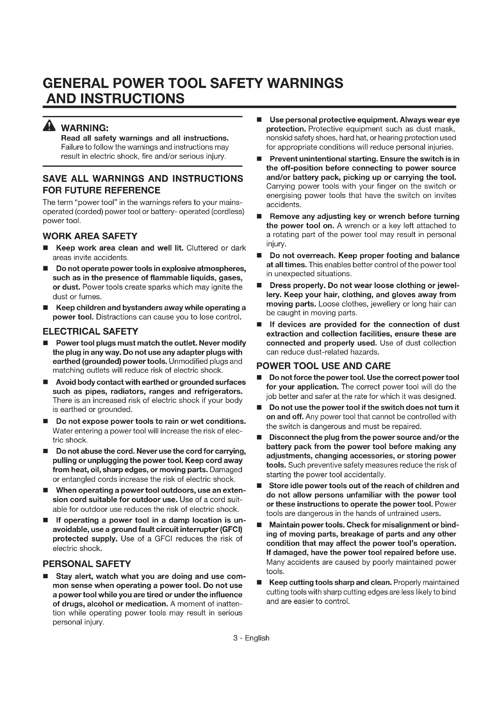 GENERAL POWER TOOL SAFETY WARNINGS