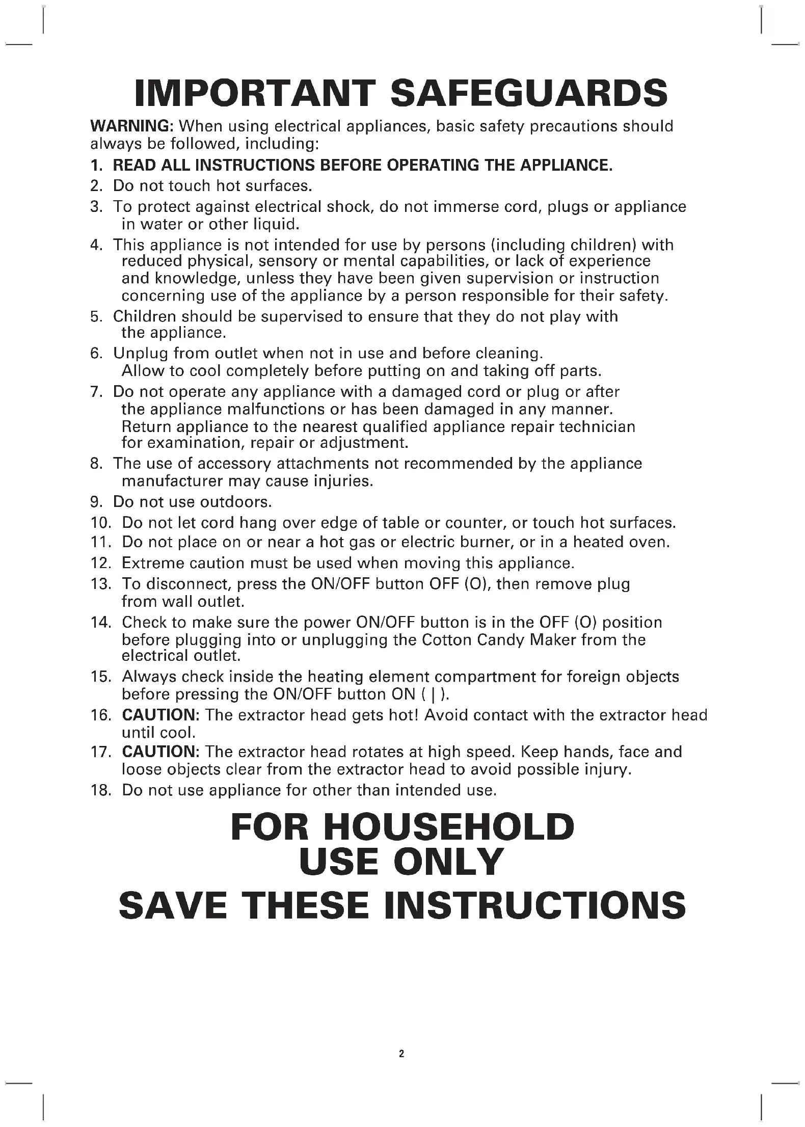 - Never store Cotton Candy Maker while it is hot or wet.