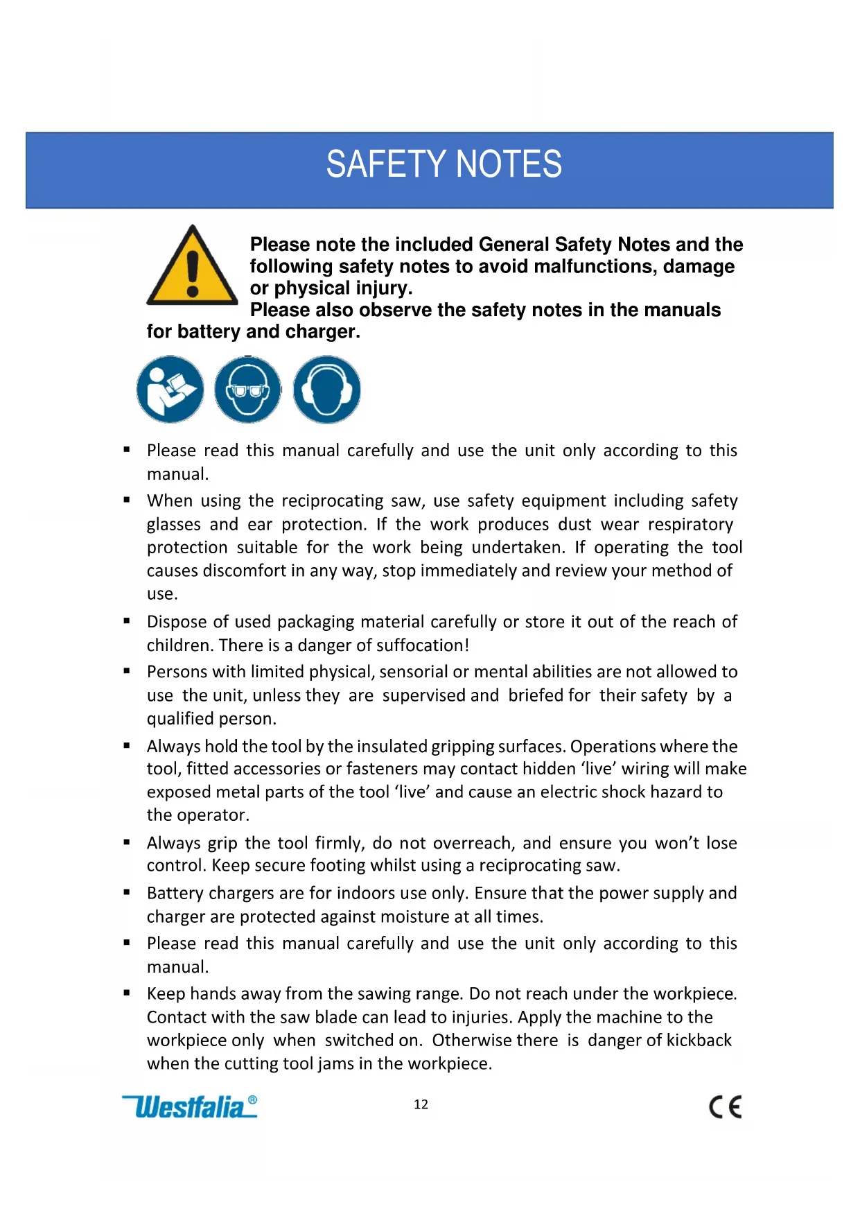 Download the instructions for your Saw in PDF format for free! Find your manual ASSG 18 - Westfalia and take your electronic device back in hand. On this page are published all the documents necessary for the use of your device. ASSG 18 by Westfalia.