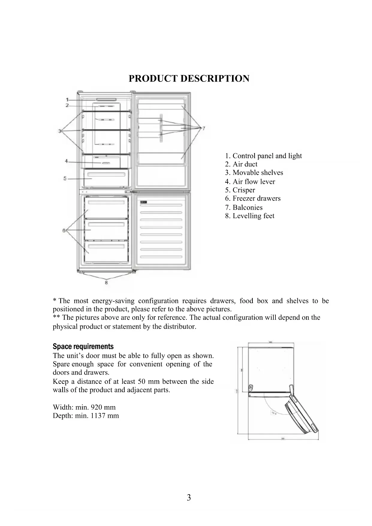 The most energy-saving configuration requires drawers, food box and shelves to be positioned in the product, please refer to the above pictures.