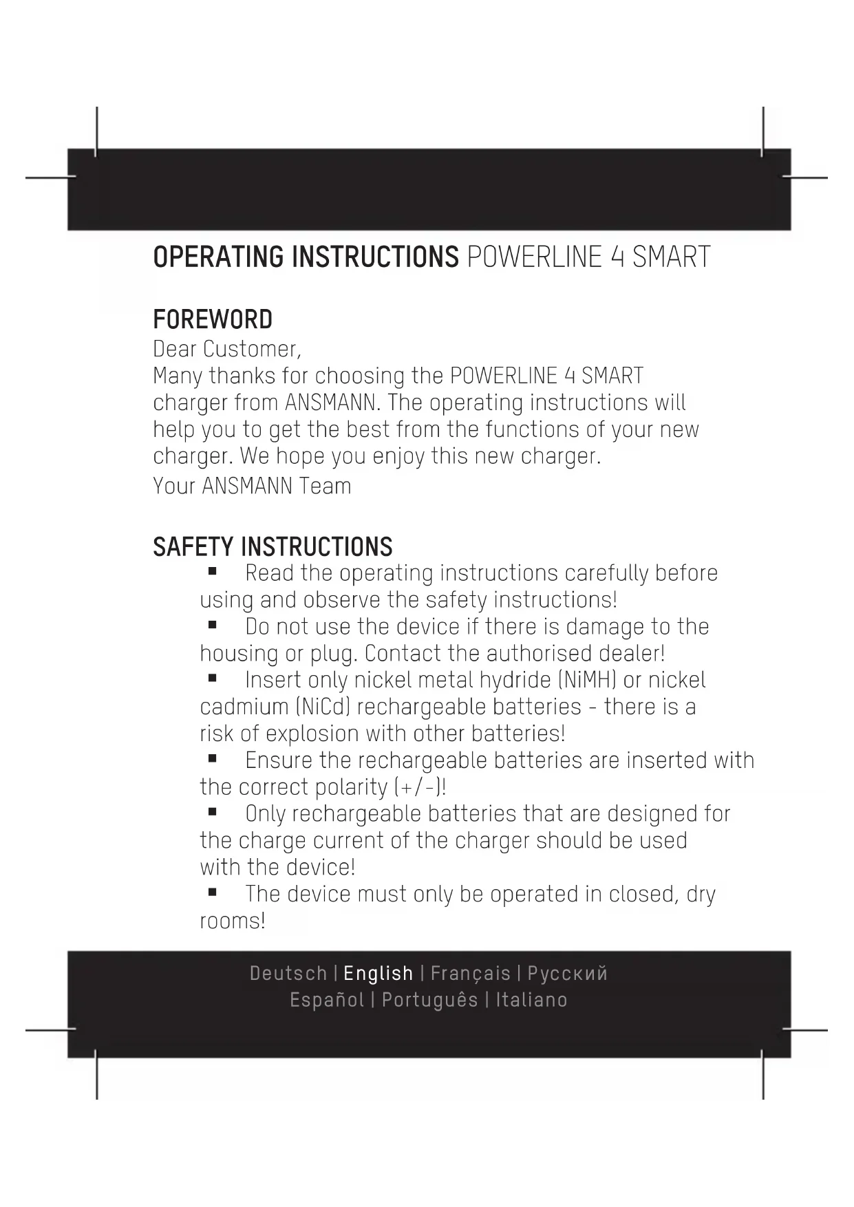 Powerline 4 Smart - Battery charger ANSMANN - Free user manual and instructions