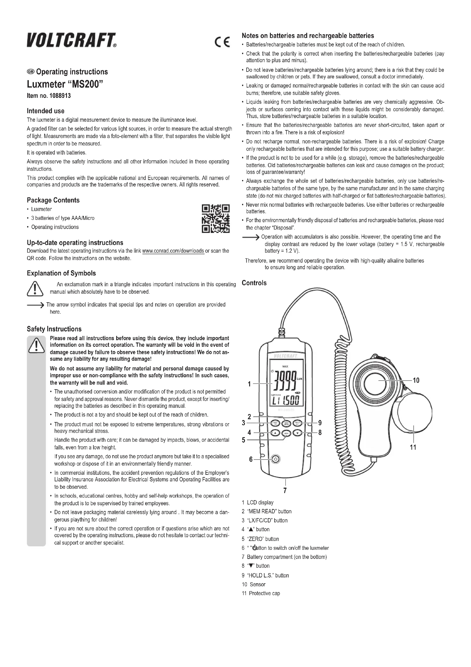 Find the device manual for free MS200LED VOLTCRAFT in PDF.