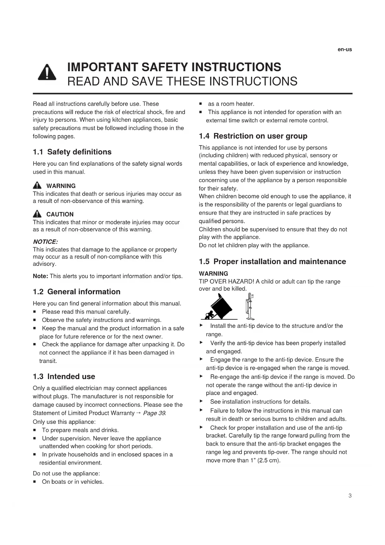 [en-us] Use and Care Manual Free-standing range 2