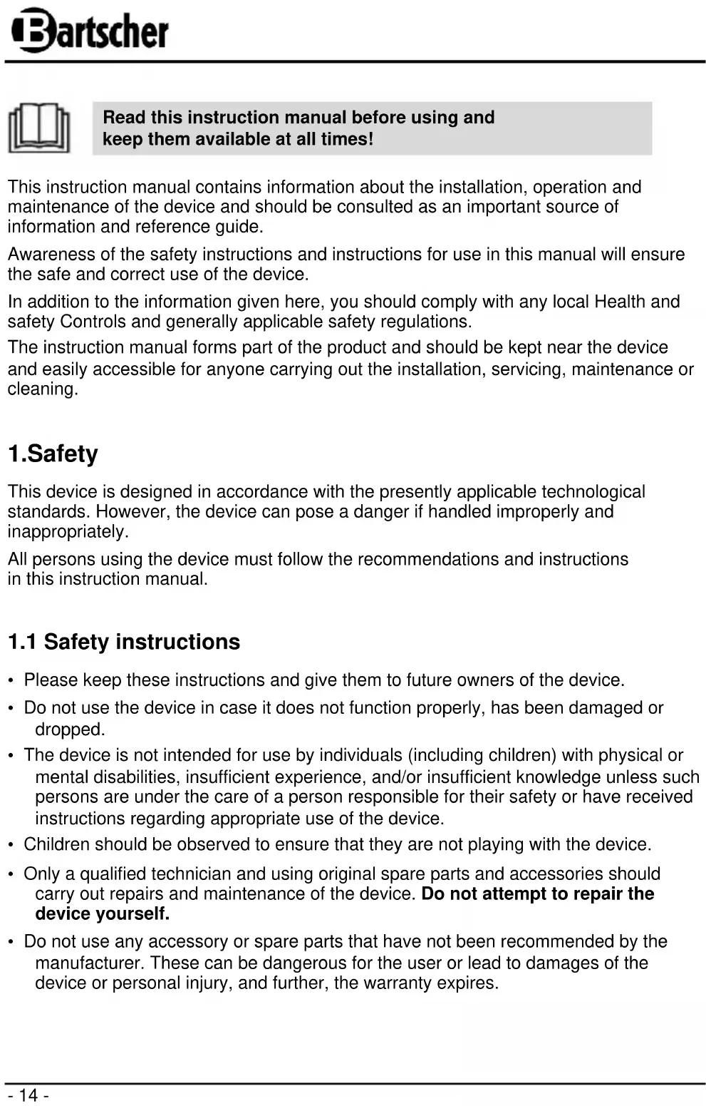 Find the device manual for free IHR1730 BARTSCHER in PDF.