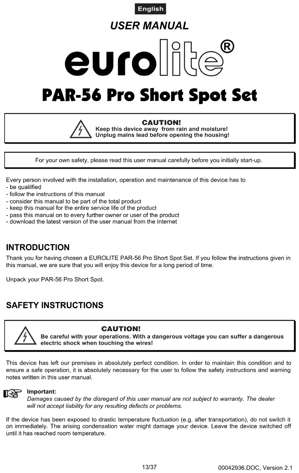 USER MANUAL PAR56 Eurolite