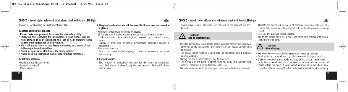 60.2549.08 - Alarm clock radio TFA - Free user manual and instructions
