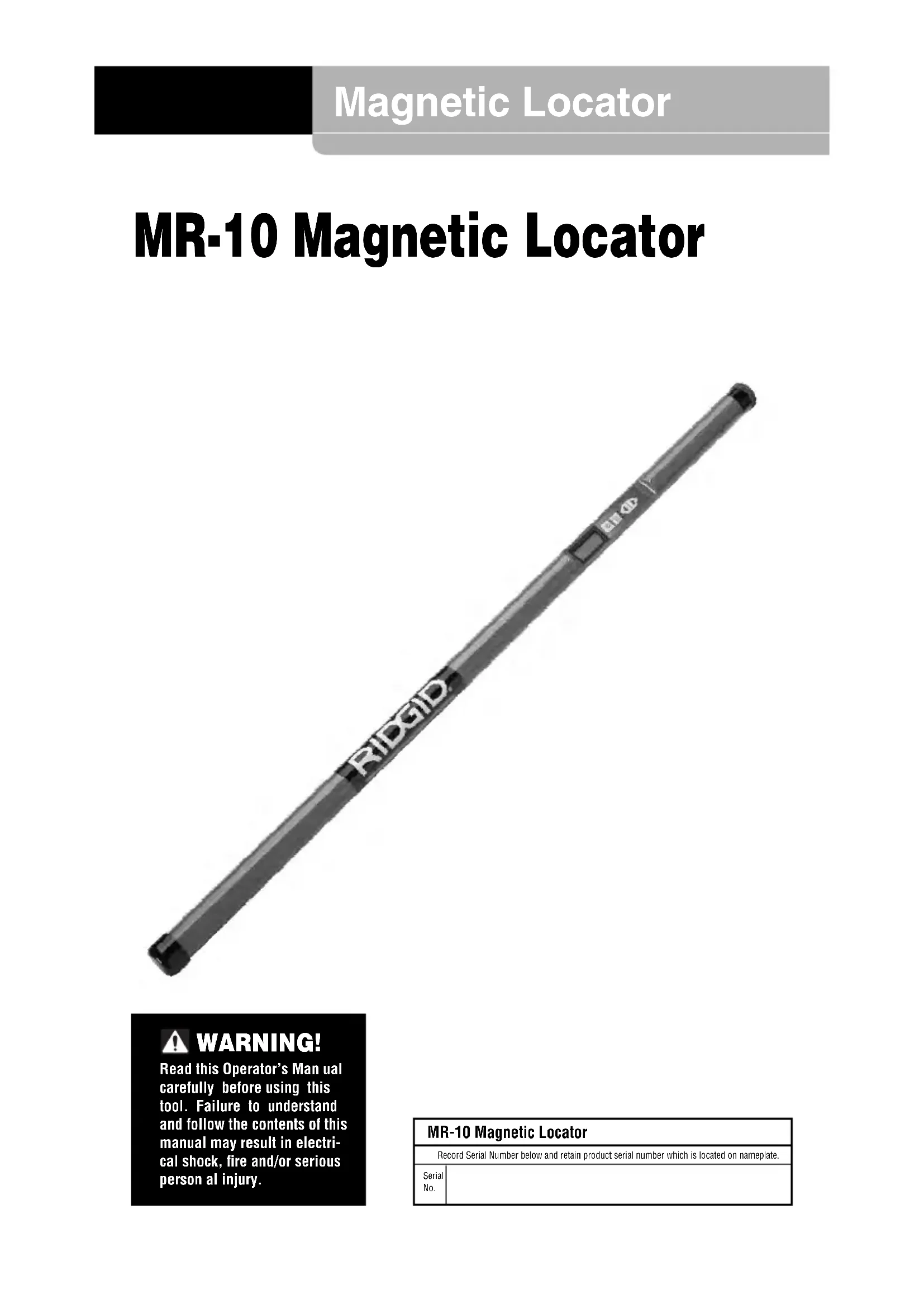 Download the instructions for your Detector in PDF format for free! Find your manual MR10 - RIDGID and take your electronic device back in hand. On this page are published all the documents necessary for the use of your device. MR10 by RIDGID.