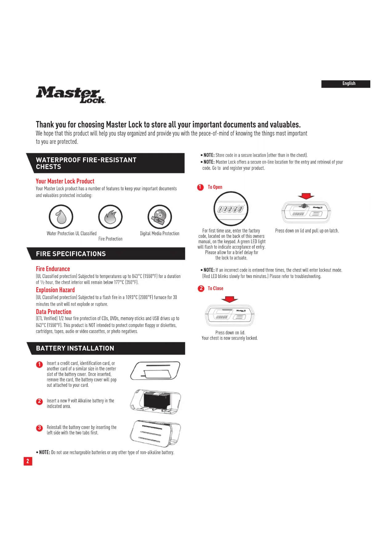 Thank you for choosing Master Lock to store all your important documents and valuables.