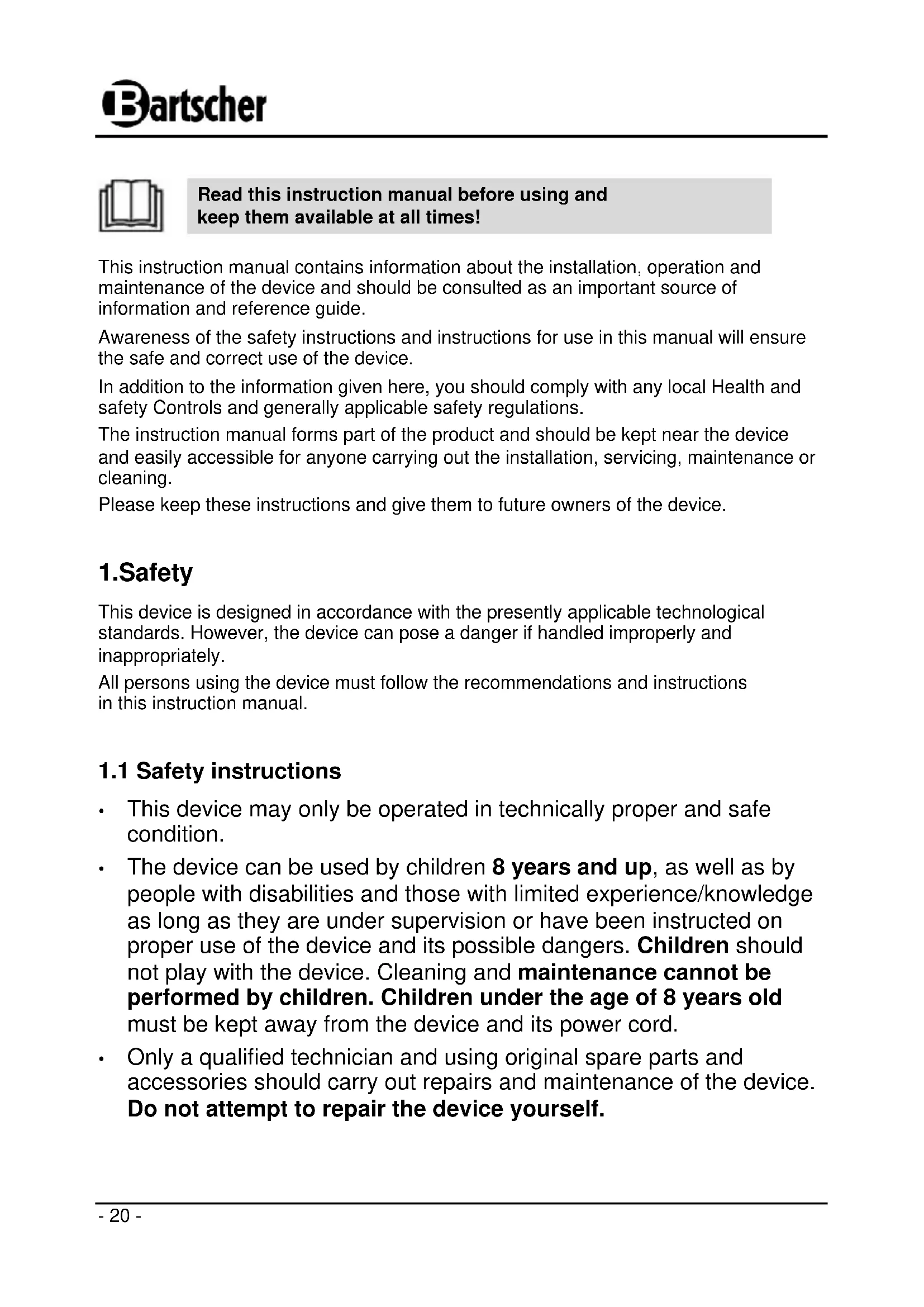 Find the device manual for free GE 28 BARTSCHER in PDF.