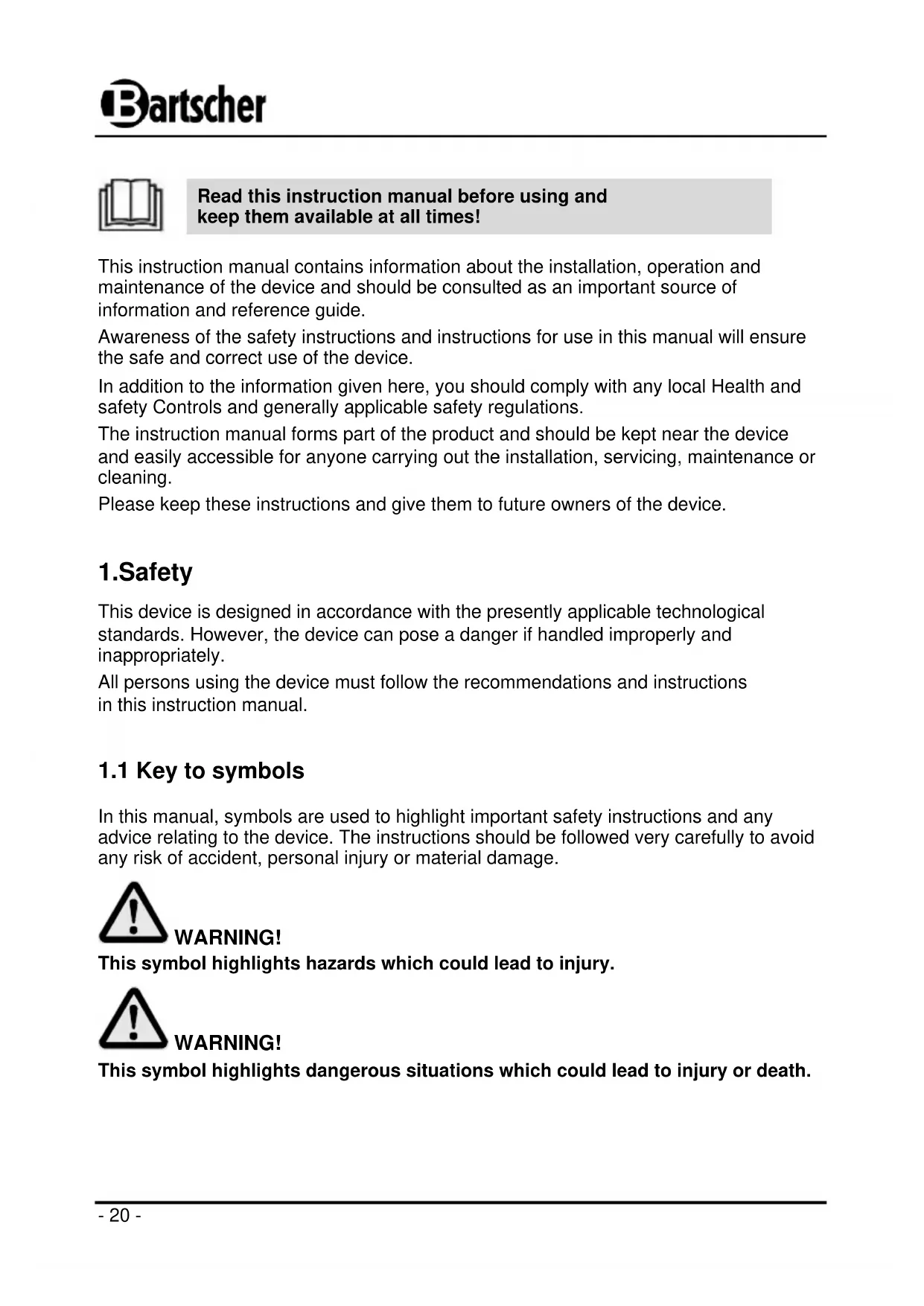 Find the device manual for free GE 25 BARTSCHER in PDF.