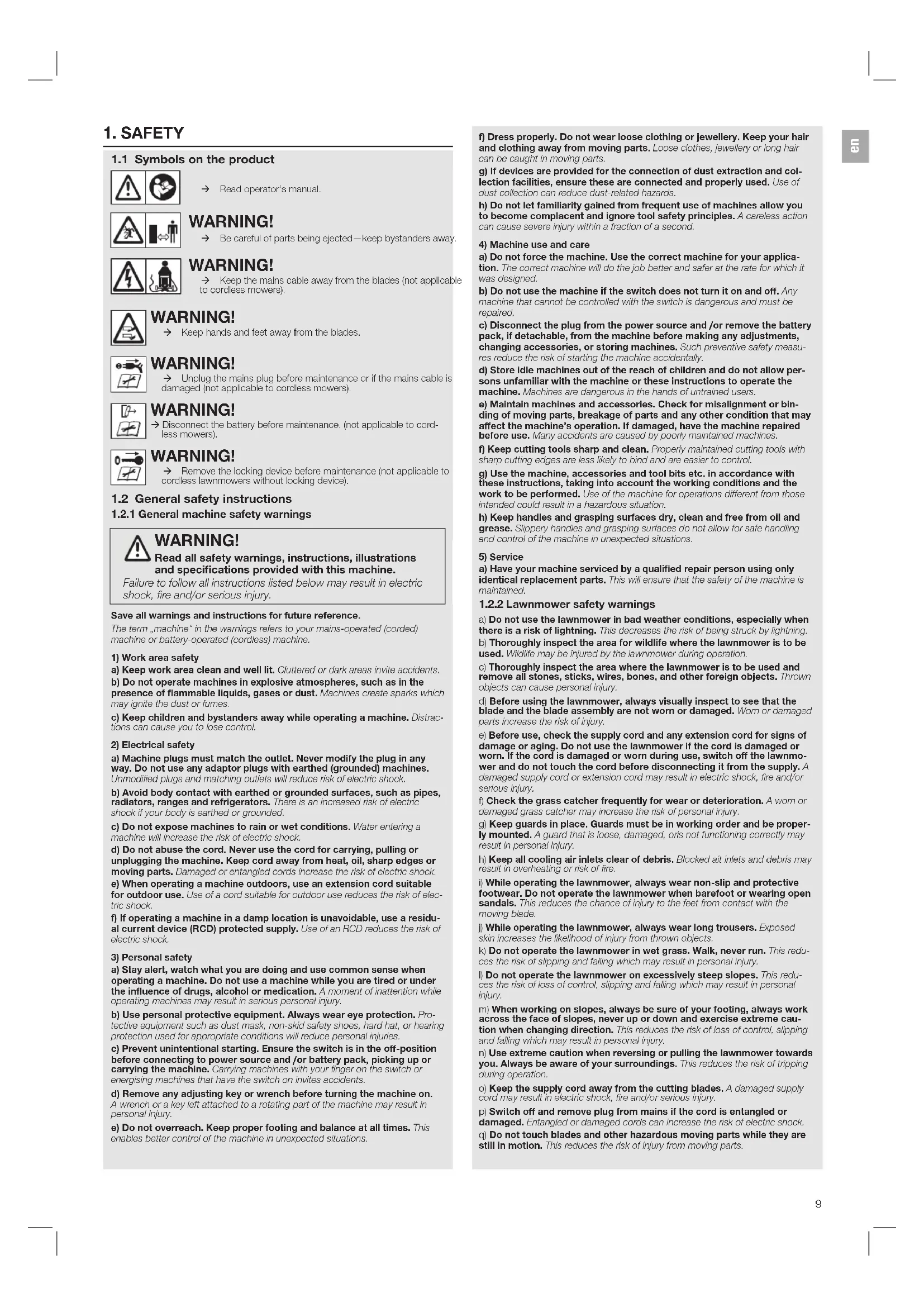 Unplug the mains plug before maintenance or if the mains cable is damaged (not applicable to cordless mowers).