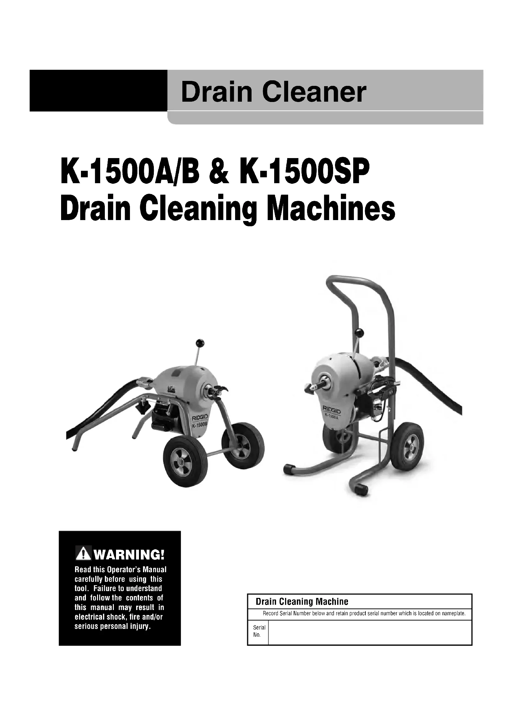Download the instructions for your Drain cleaning machine in PDF format for free! Find your manual K1500A - RIDGID and take your electronic device back in hand. On this page are published all the documents necessary for the use of your device. K1500A by RIDGID.