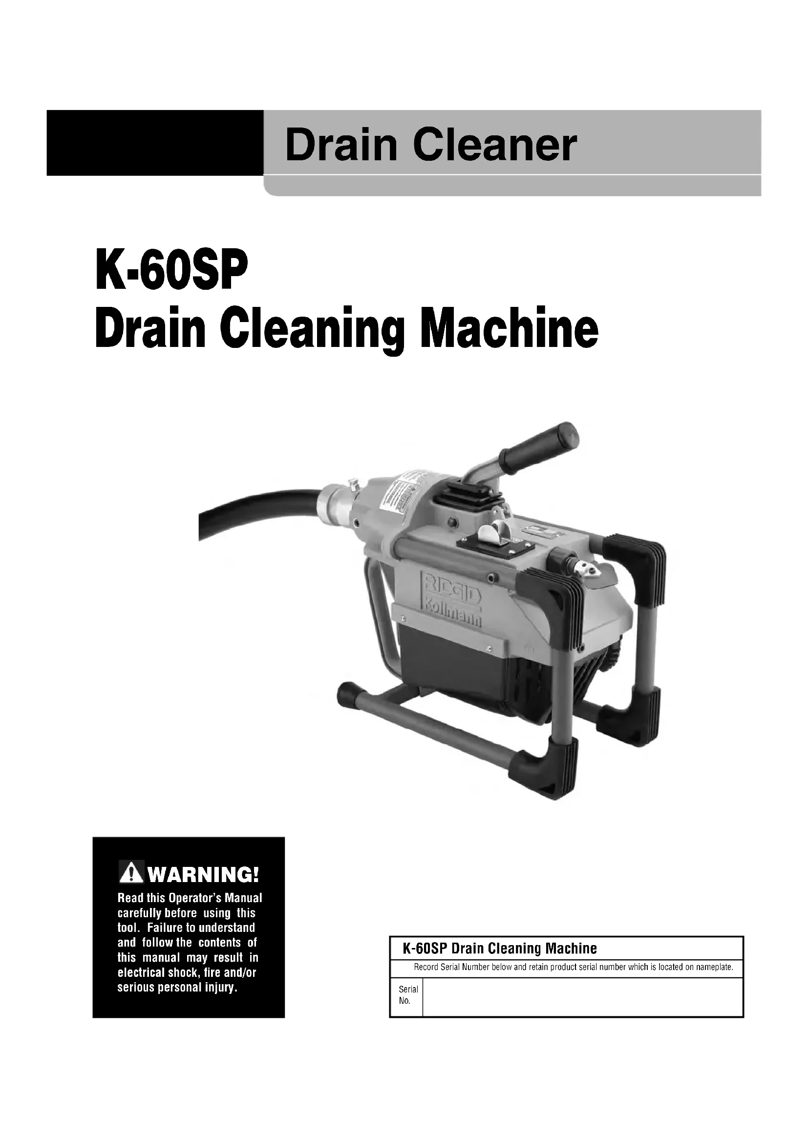 - Have your power tool serviced by a qualified repair person using only identical replacement parts. This will ensure that the safety of the power tool is main- tained. Specific Safety Information WARNING This section contains important safety informa- tion that is specific to this tool. Read these precautions carefully before using the K-60SP Drain Cleaner to reduce the risk of elec- trical shock or other serious injury.