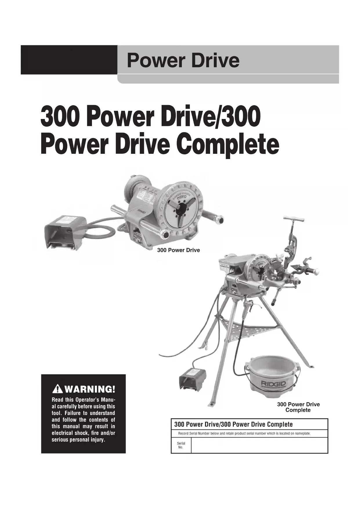 Download the instructions for your Perceuse électrique industrielle in PDF format for free! Find your manual 300 Complete - RIDGID and take your electronic device back in hand. On this page are published all the documents necessary for the use of your device. 300 Complete by RIDGID.