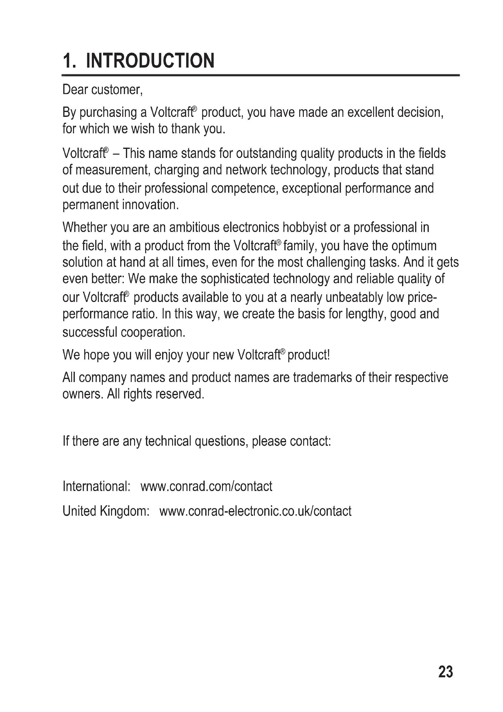 We hope you will enjoy your new Voltcraft® product!