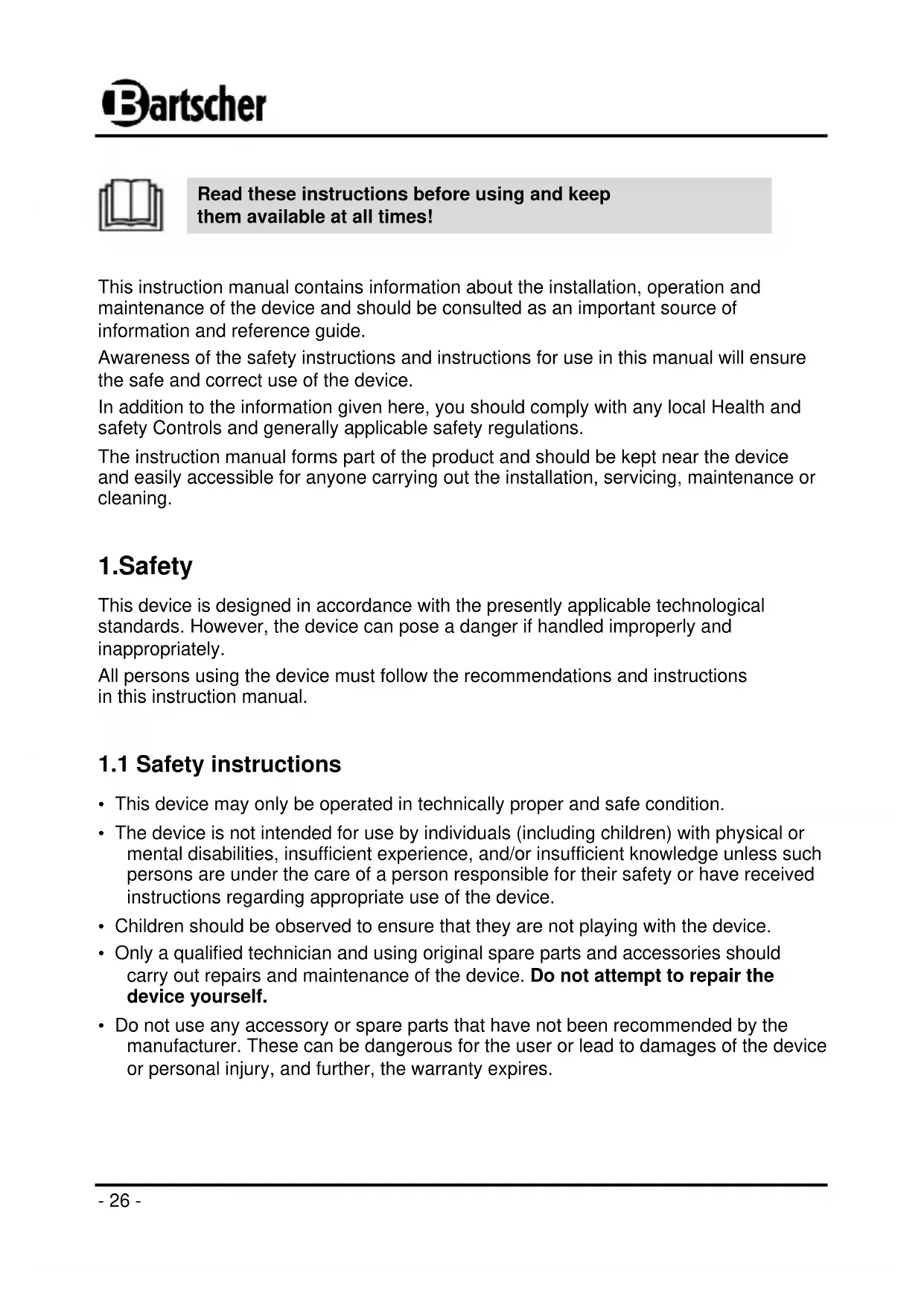 Find the device manual for free GWTH1 BARTSCHER in PDF.