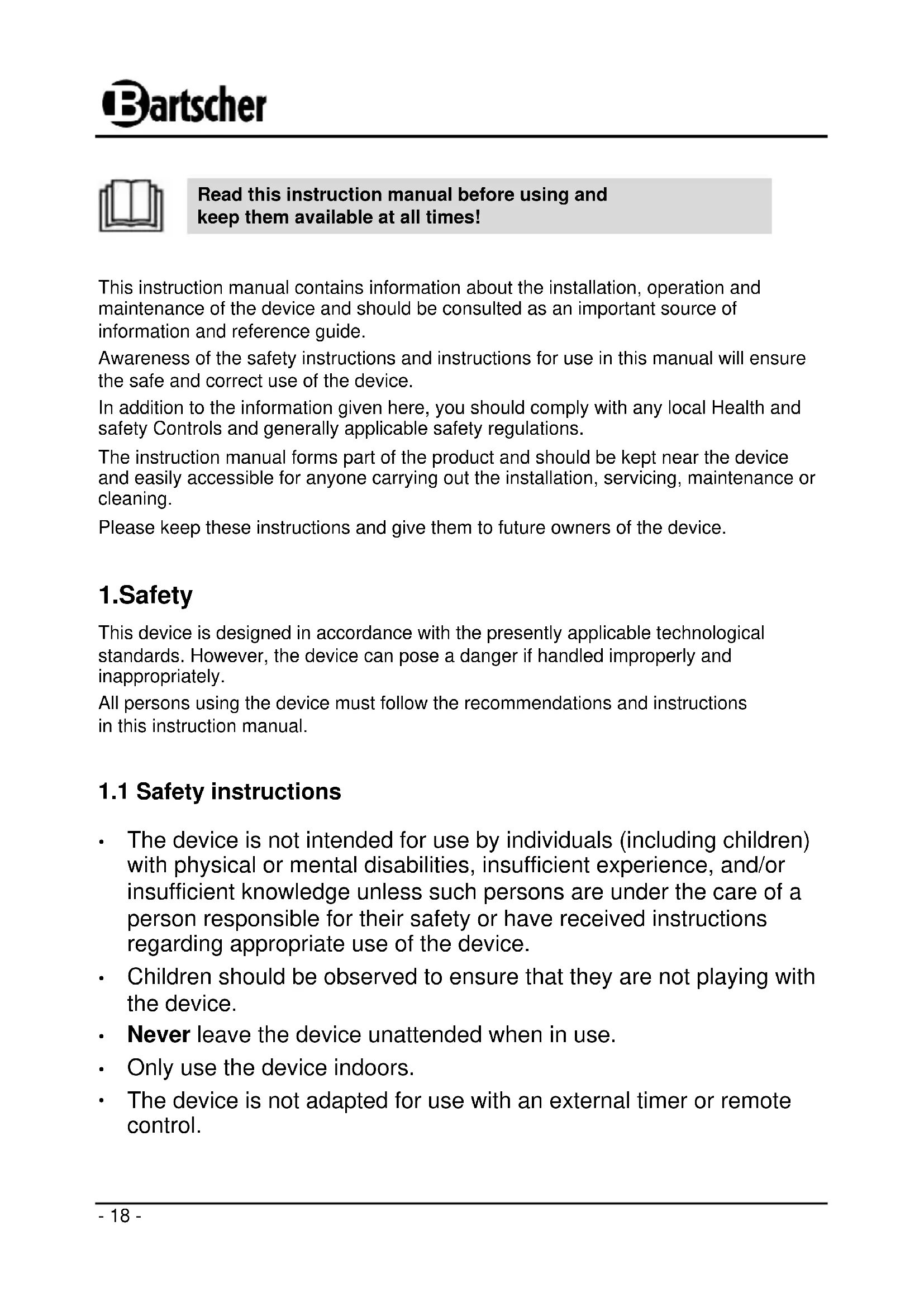 Find the device manual for free 1KA10 BARTSCHER in PDF.
