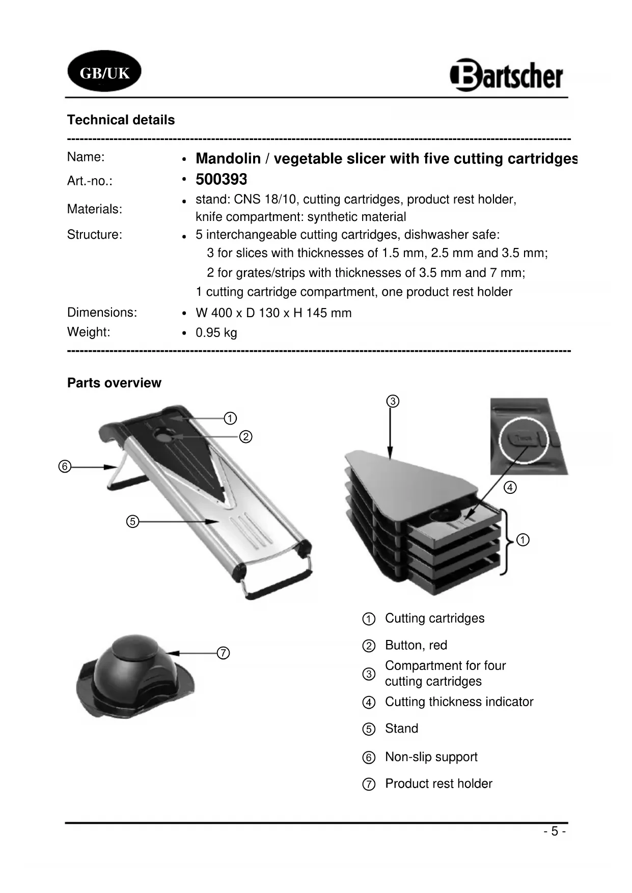 USER MANUAL 500393 BARTSCHER