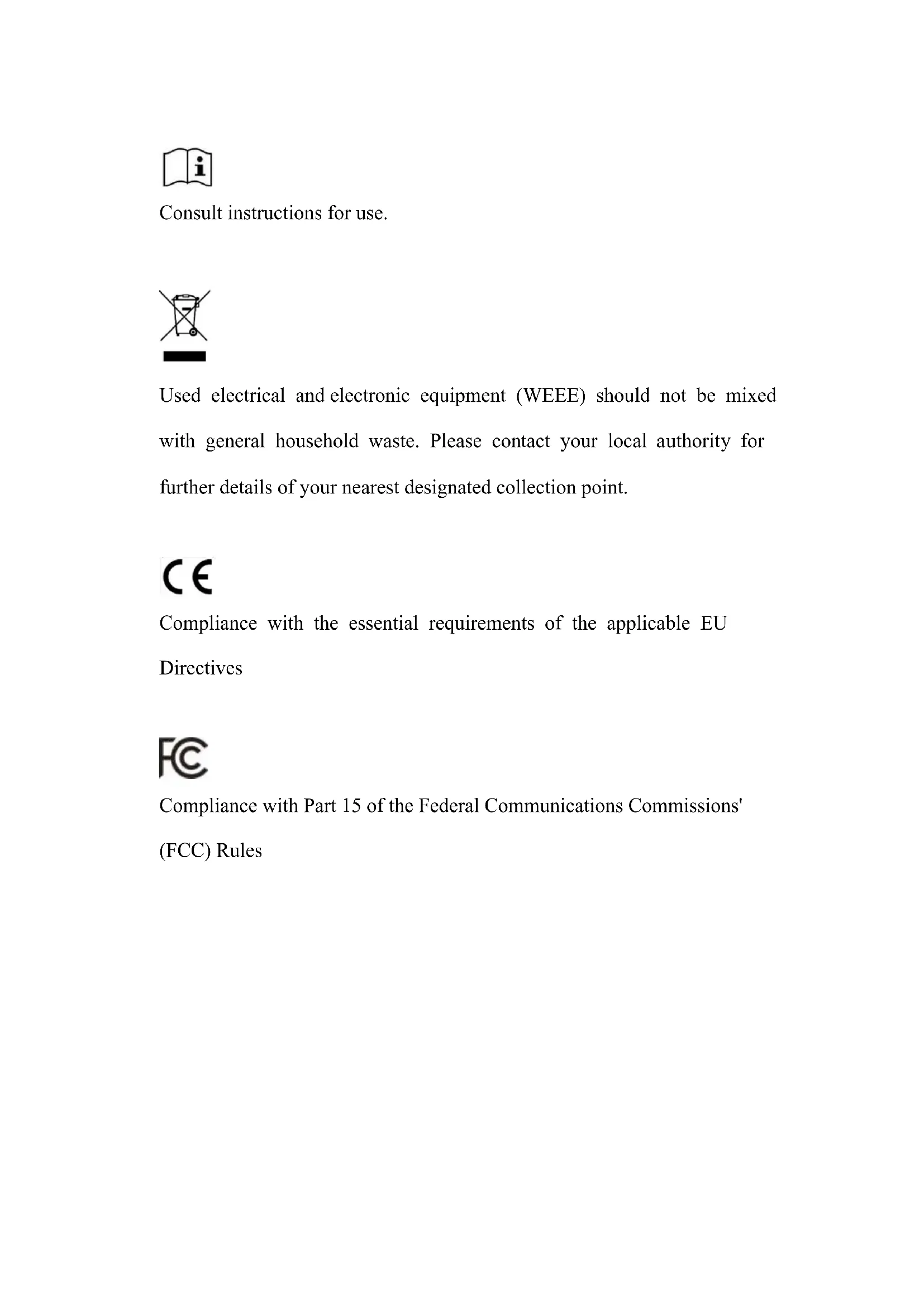 Compliance with Part 15 of the Federal Communications Commissions' (FCC) RulesExplanation of safety icons General warning