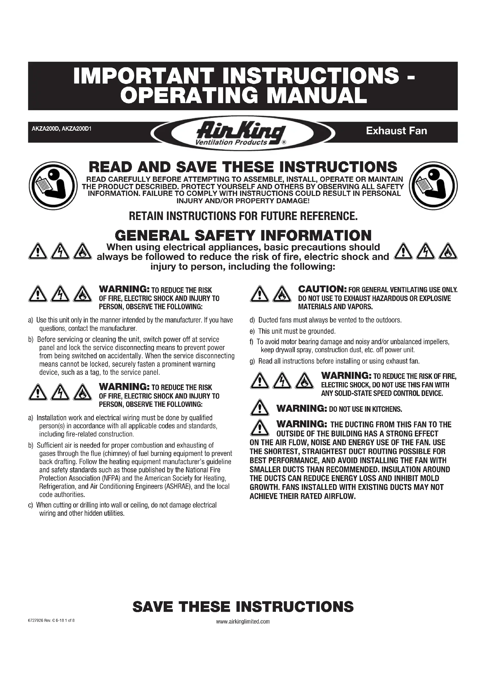 www.airkinglimited.com6727926 Rev. C 6-18 1 of 8 Exhaust Fan
