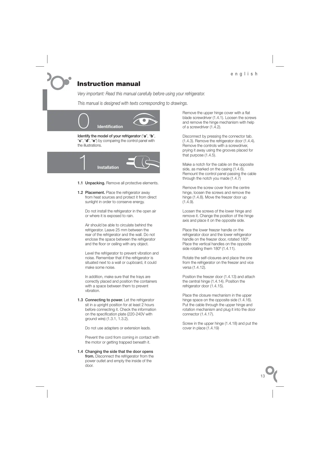 Rotate the self-closures and place the one from the refrigerator on the freezer and vice versa (1.4.12).