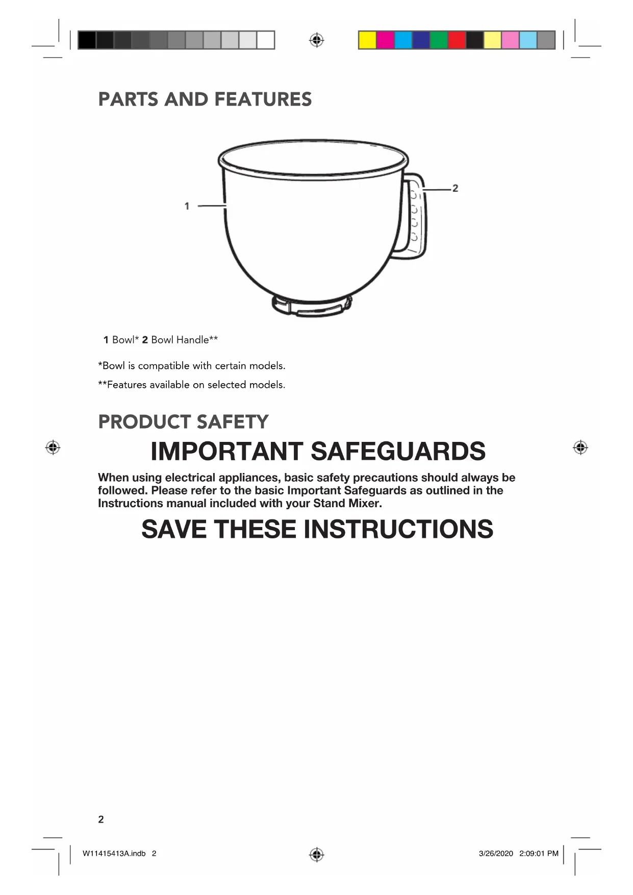 *Bowl is compatible with certain models. **Features available on selected models. 1 Bowl* 2 Bowl Handle**