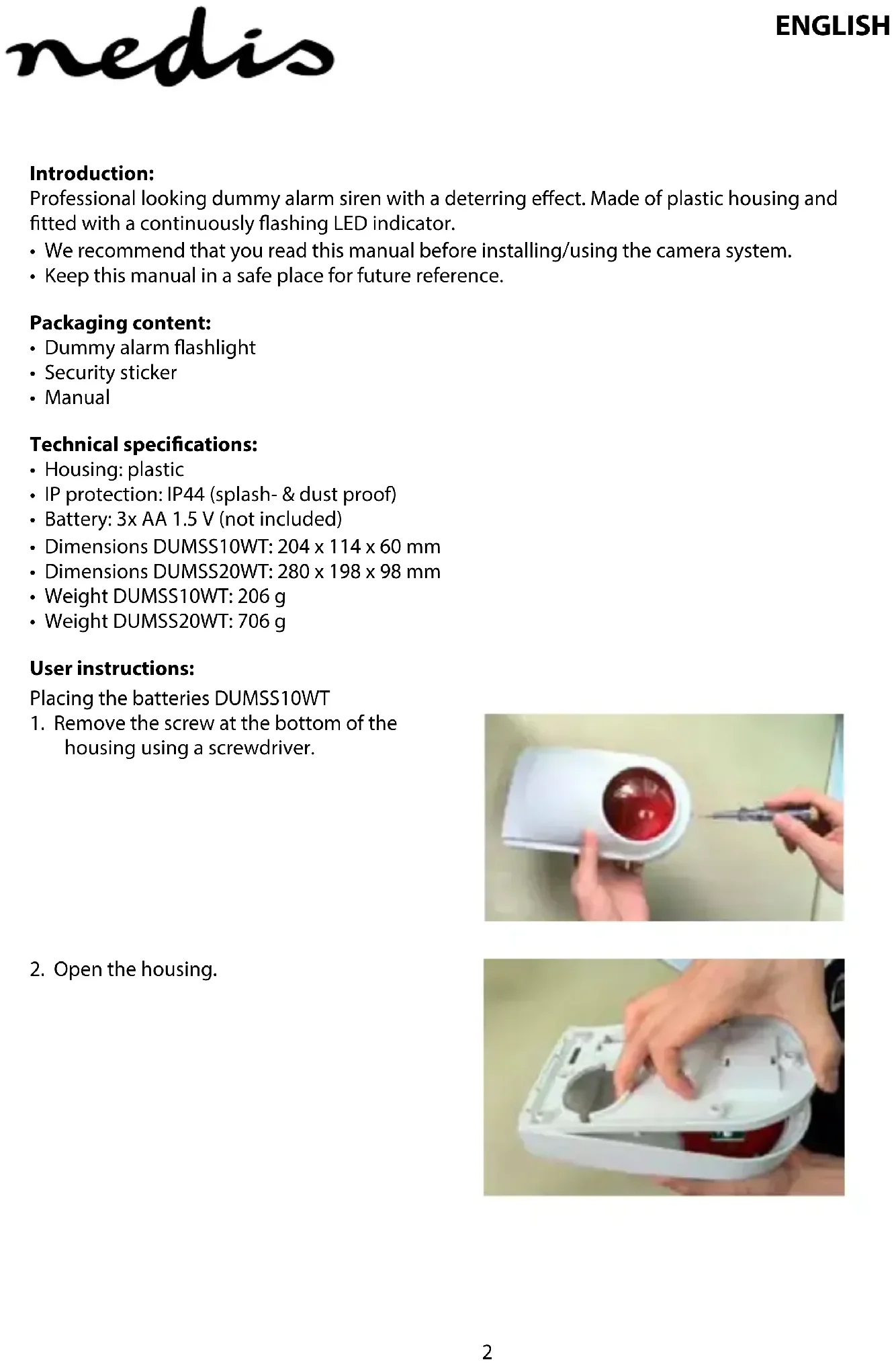 DUMSS20WT - Alarm system NEDIS - Free user manual and instructions