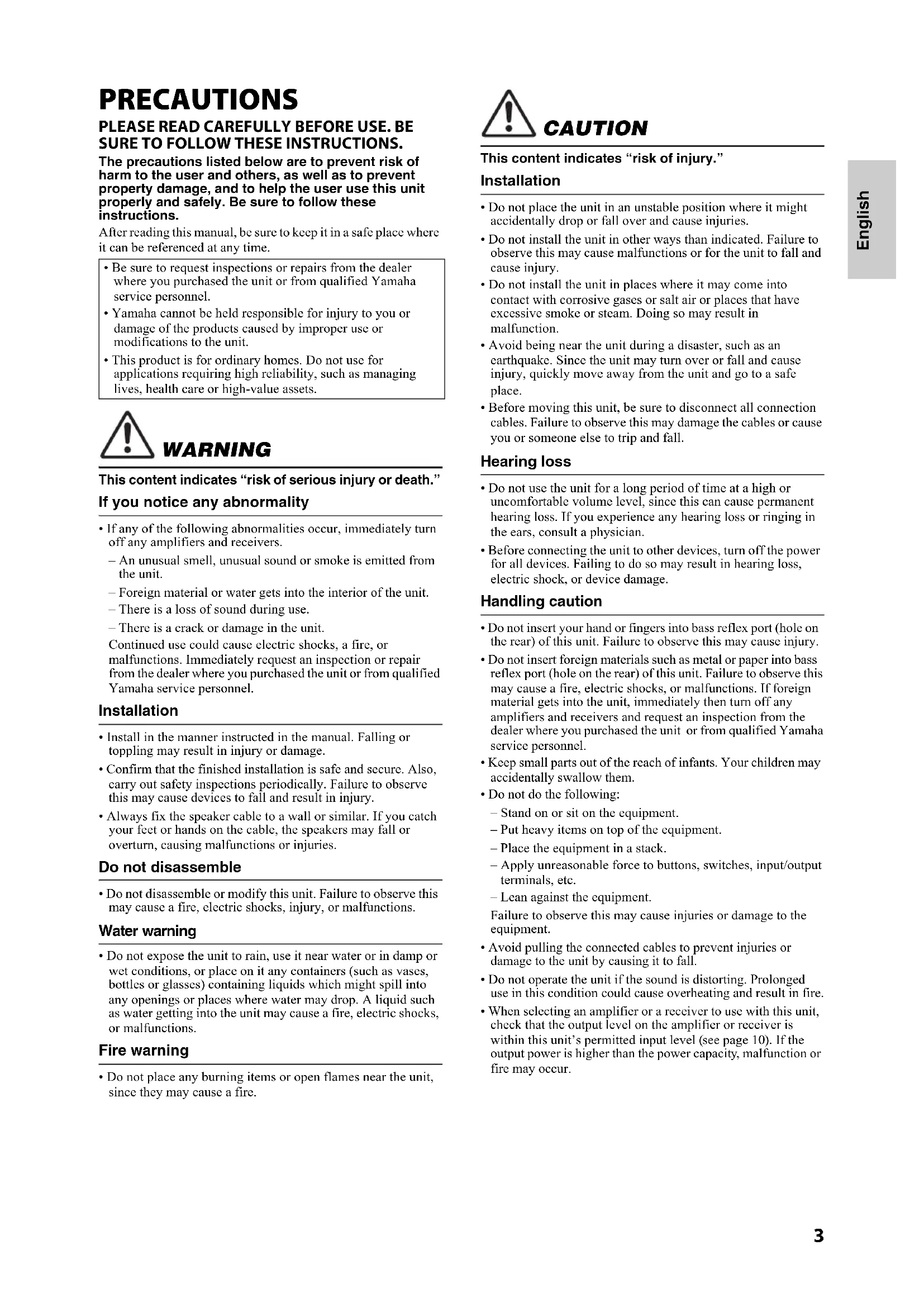 NS3000 - Speaker YAMAHA - Free user manual and instructions