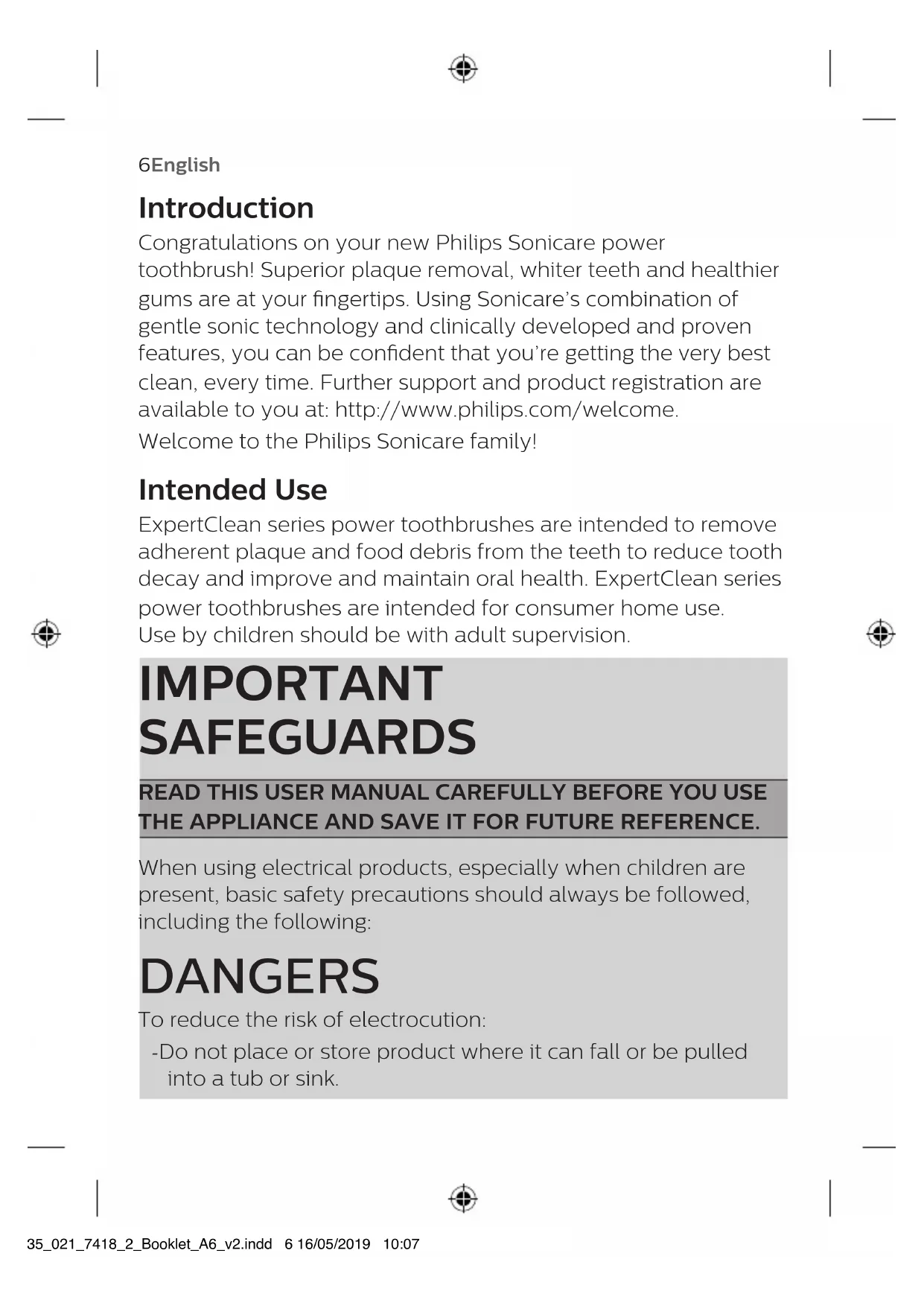 Congratulations on your new Philips Sonicare power toothbrush! Superior plaque removal, whiter teeth and healthier gums are at your fingertips. Using Sonicare's combination of gentle sonic technology and clinically developed and proven features, you can be confident that you're getting the very best clean, every time. Further support and product registration are available to you at: http://www.philips.com/welcome.
