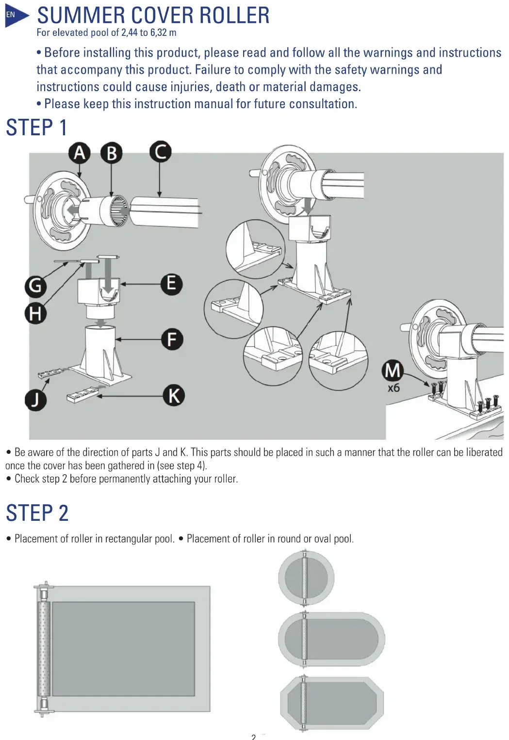 - Placement of roller in rectangular pool. • Placement of roller in round or oval pool.3 STEP 3