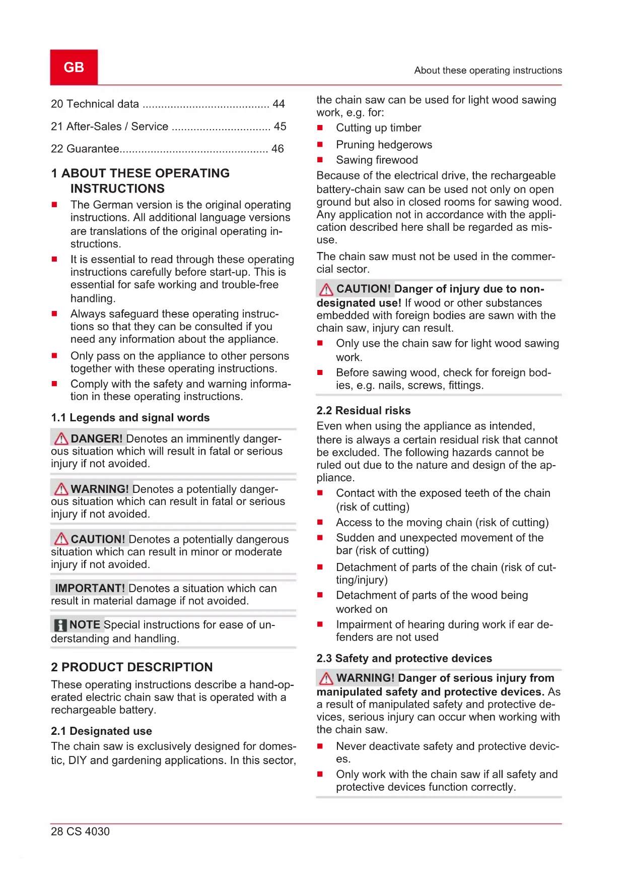 - GB 28 CS 4030 About these operating instructions 20 Technical data p. 44