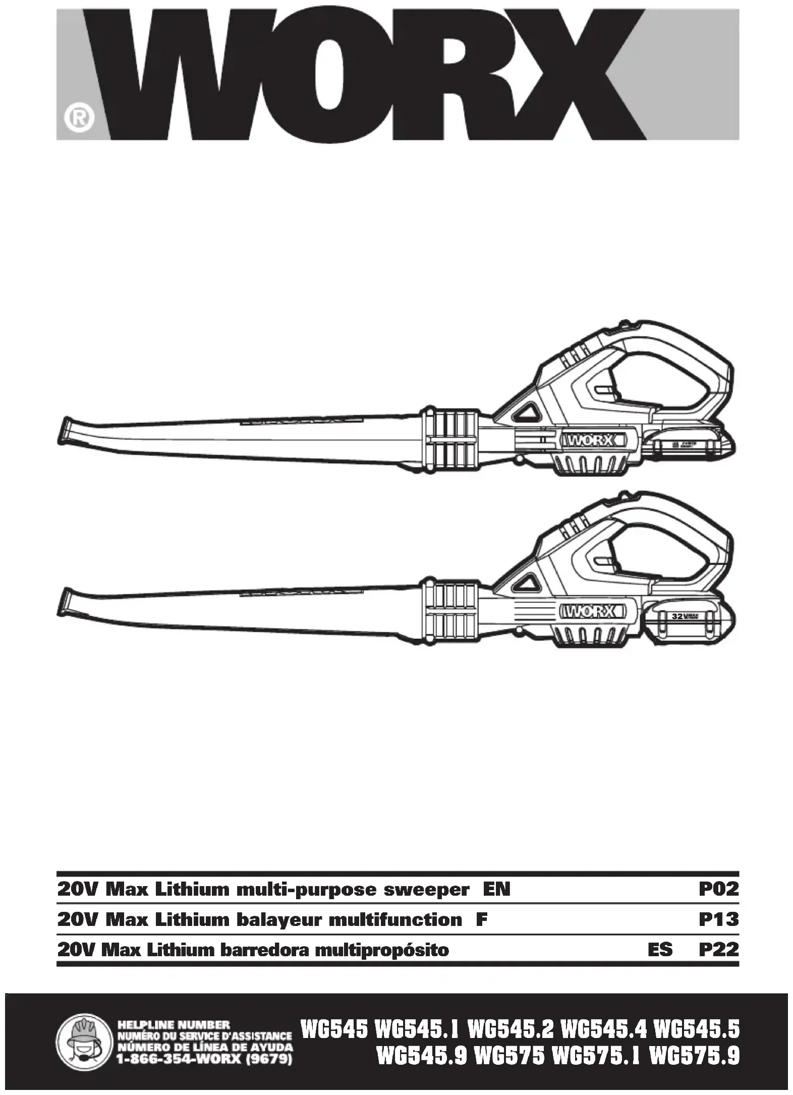 Download the instructions for your Blower in PDF format for free! Find your manual WG545.6 - WORX and take your electronic device back in hand. On this page are published all the documents necessary for the use of your device. WG545.6 by WORX.