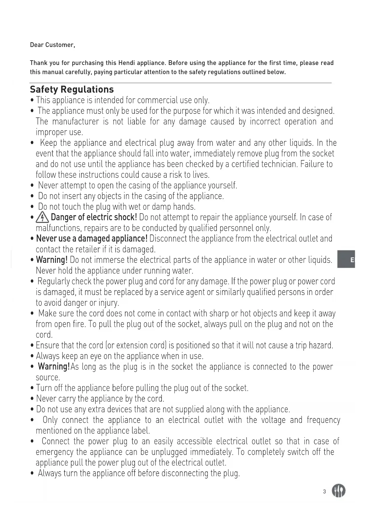 - The appliance must only be used for the purpose for which it was intended and designed. The manufacturer is not liable for any damage caused by incorrect operation and improper use.