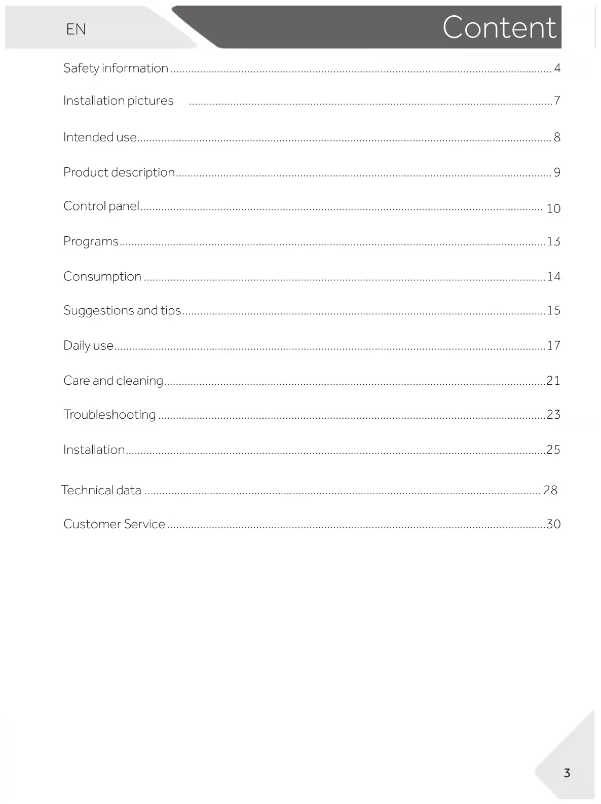 Risk of injury or suff ocation! Disconnect the appliance from the power supply. To ensure safety when disposing of an old tumble dryer disconnect the mains plug from the socket, cut the mains power cable and destroy this together with the plug. To prevent children shutting themselves in the machine break the door hinges or the door lock.EN Content