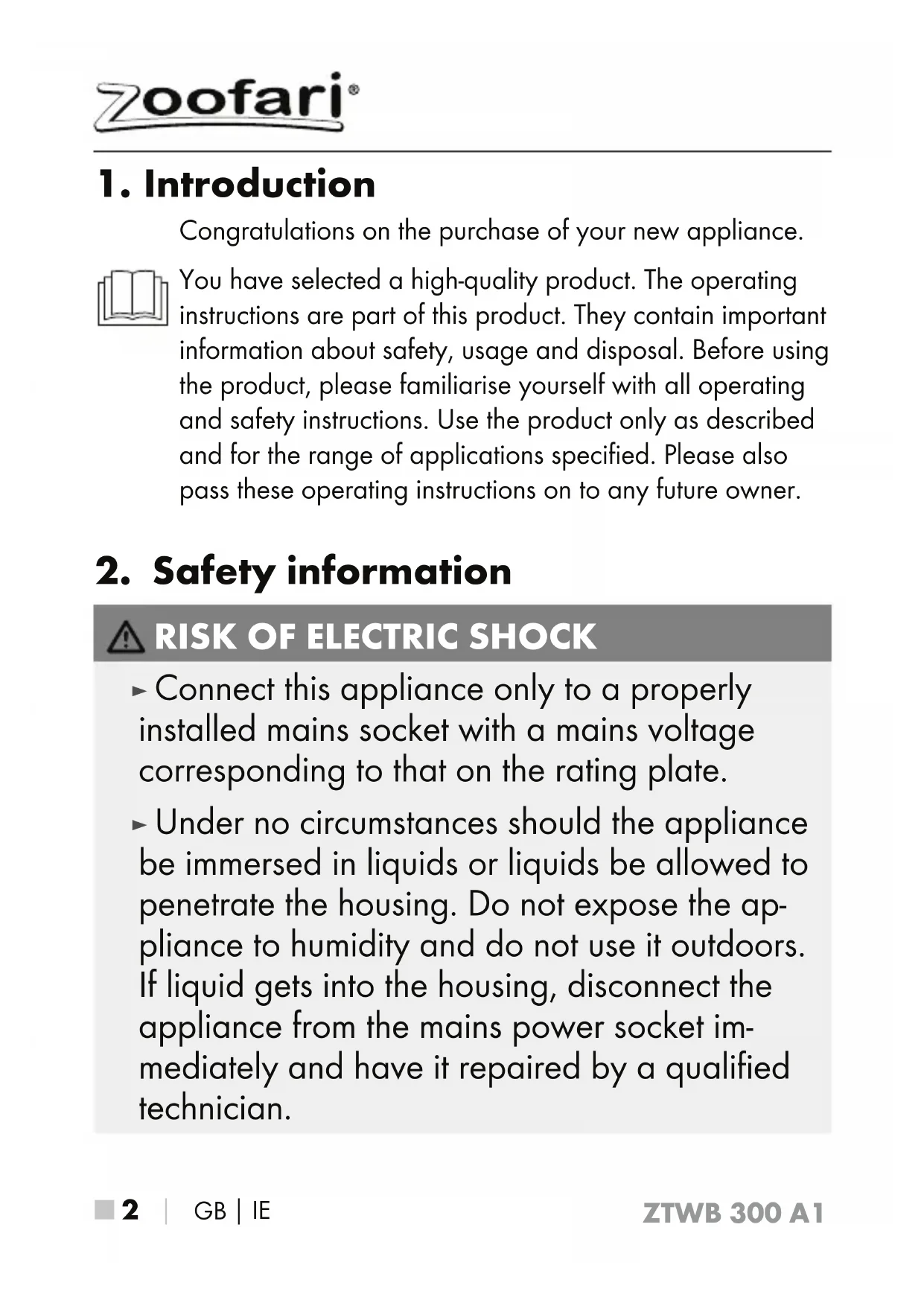 Find the device manual for free ZTWB 300 A1 ZOOFARI in PDF.