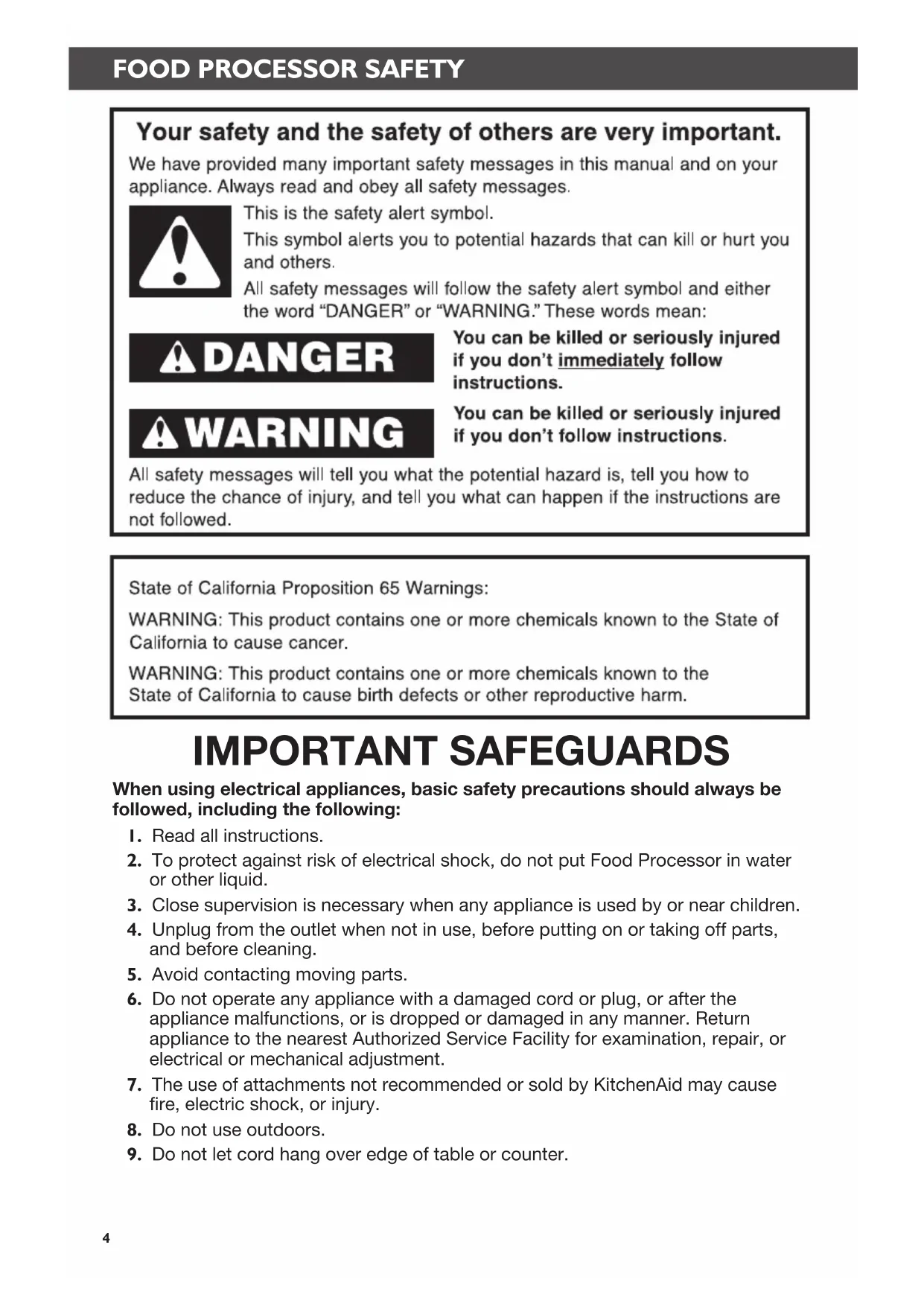 7. The use of attachments not recommended or sold by KitchenAid may cause fire, electric shock, or injury.