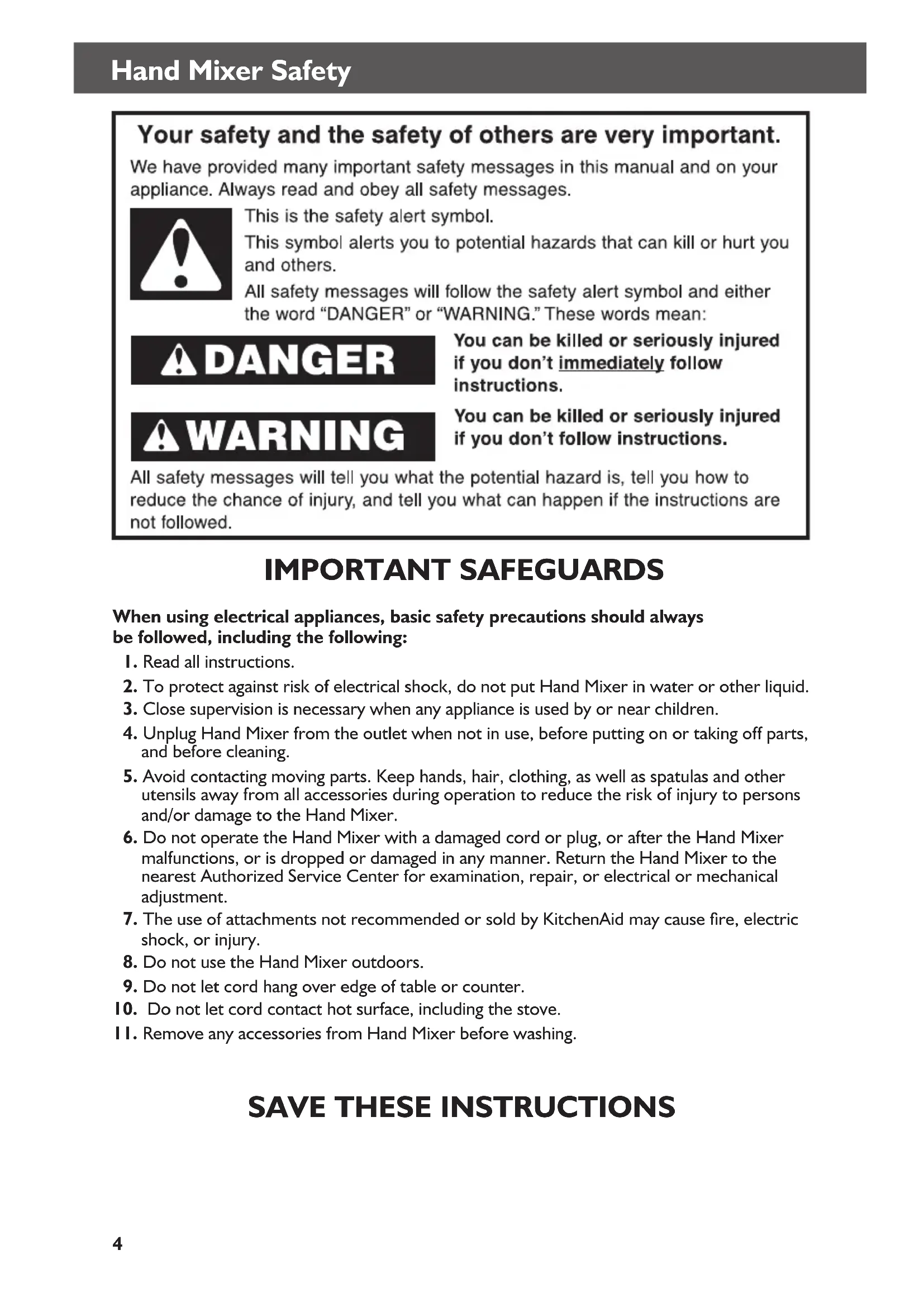 4. Unplug Hand Mixer from the outlet when not in use, before putting on or taking off parts,