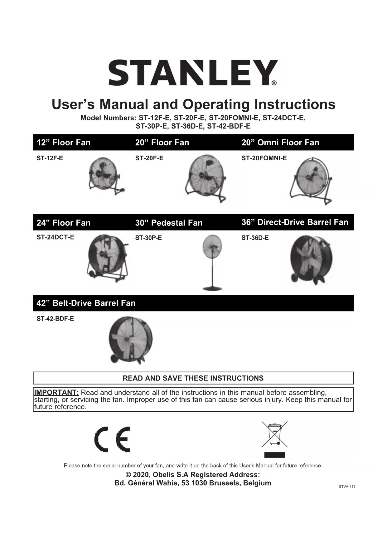 Download the instructions for your Fan in PDF format for free! Find your manual ST12FE - STANLEY and take your electronic device back in hand. On this page are published all the documents necessary for the use of your device. ST12FE by STANLEY.