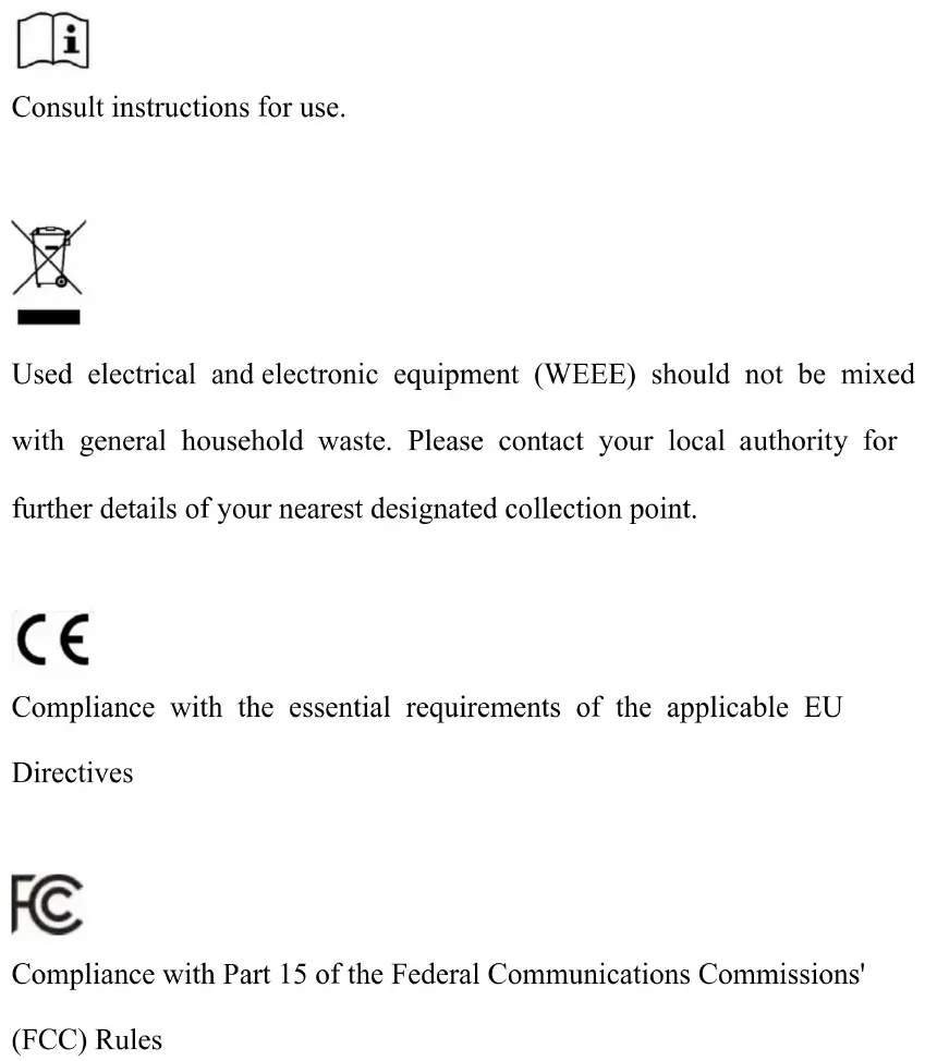 Compliance with Part 15 of the Federal Communications Commissions' (FCC) RulesExplanation of safety icons General warning