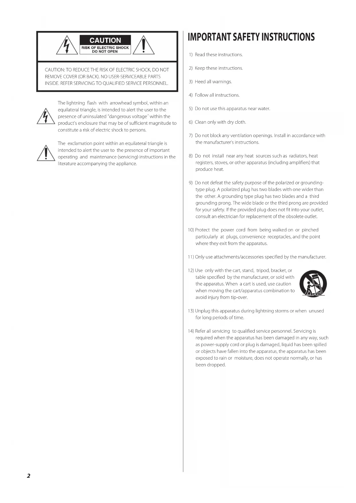 14) Refer all servicing to qualified service personnel. Servicing is