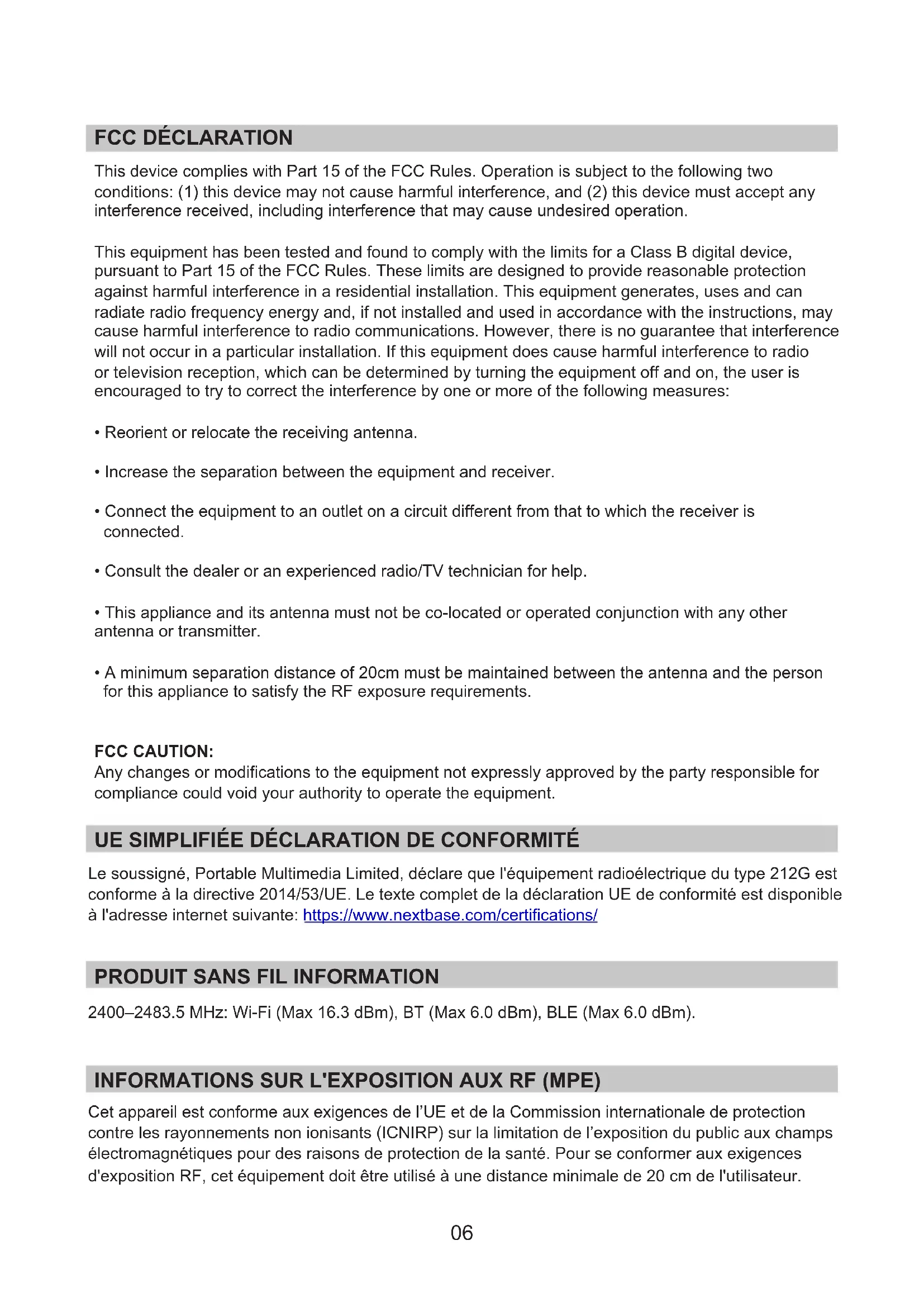 Company Name: Portable Multimedia Ltd Mailing Address : Unit 2, Caerphilly Business Park, Van Road, Caerphilly. CF83 3ED. UK Contact person : Graham Lambert Signature: Email Address : support@nextbase.com Tel : +44 02920 866429 Date : 14th May 2018