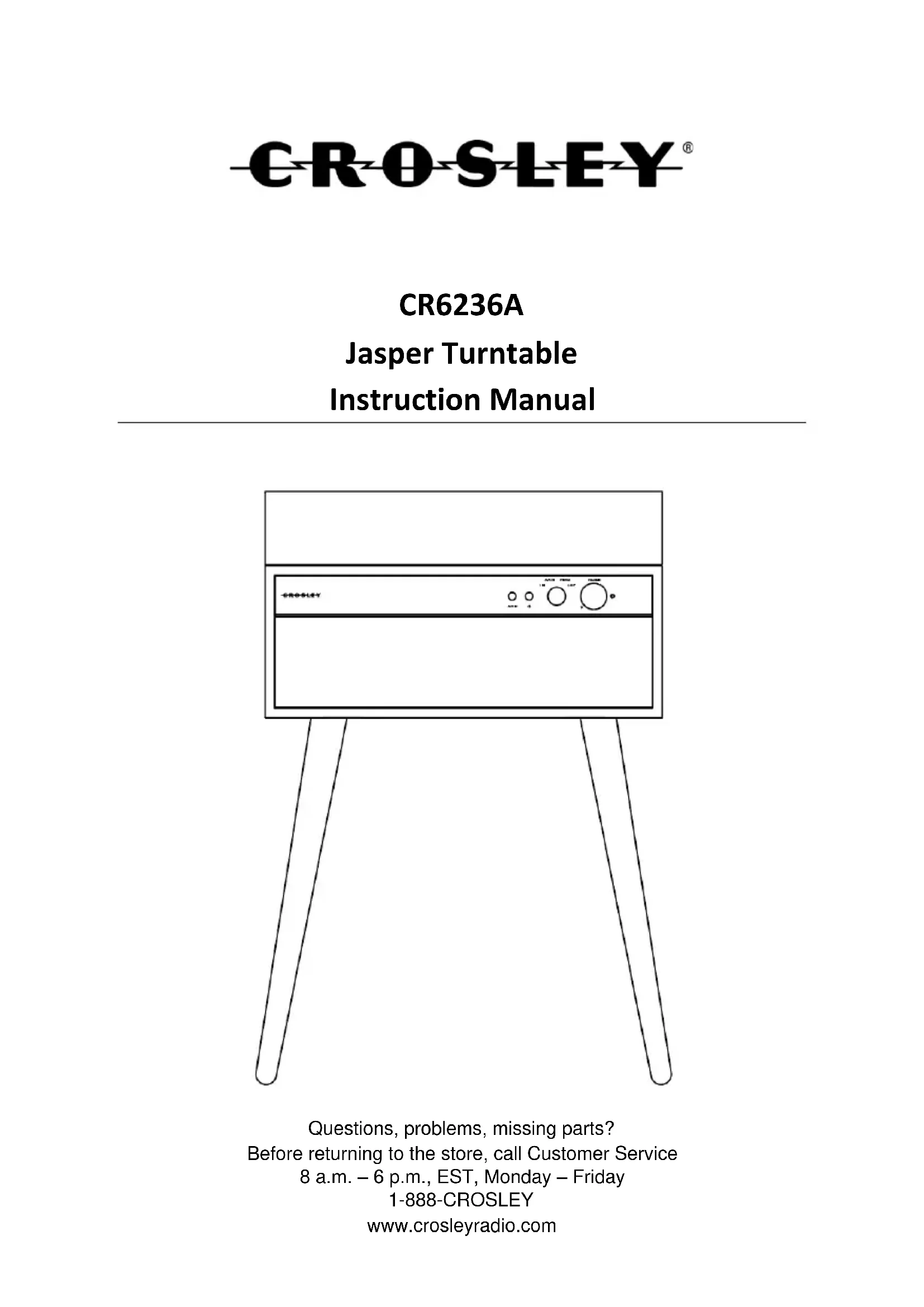 Jasper CR6236A - Turntable Crosley - Free user manual and instructions