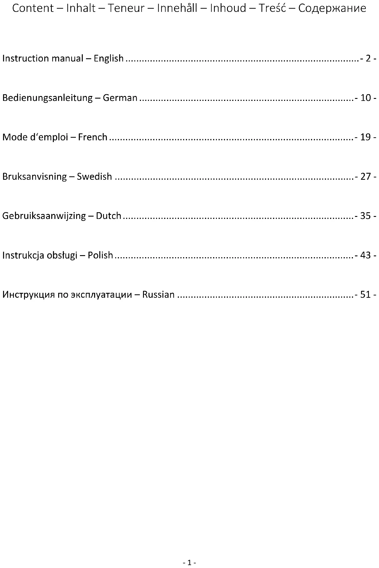 Before delivery our devices are subjected to rigorous quality control. If, despite all care, damage has occurred during production or transportation, please return the device to your dealer. In addition to statutory legal rights, the purchaser has an option to claim under the terms of the following guarantee: For the purchased device we provide 2 years guarantee, commencing from the day of sale. If you have a defective product, you can directly go back to the point of purchase.- 9 - Defects which arise due to improper handling of the device and malfunctions due to interventions and repairs by third parties or the fitting of non-original parts are not covered by this guarantee. Always keep your receipt, without the receipt you can’t claim any form of warranty. Damage caused by not following the instruction manual, will lead to a void of warranty, if this results in consequential damages then we will not be liable. Neither can we hold responsible for material damage or personal injury caused by improper use or if the instruction manual are not properly executed. Damage to accessories does not mean free replacement of the whole appliance. In such case please contact our service department. Broken glass or breakage of plastic parts is always subject to a charge. Defects to consumables or parts subjected to wearing, as well as cleaning, maintenance or the replacement of said parts are not covered by the warranty and are to be paid.