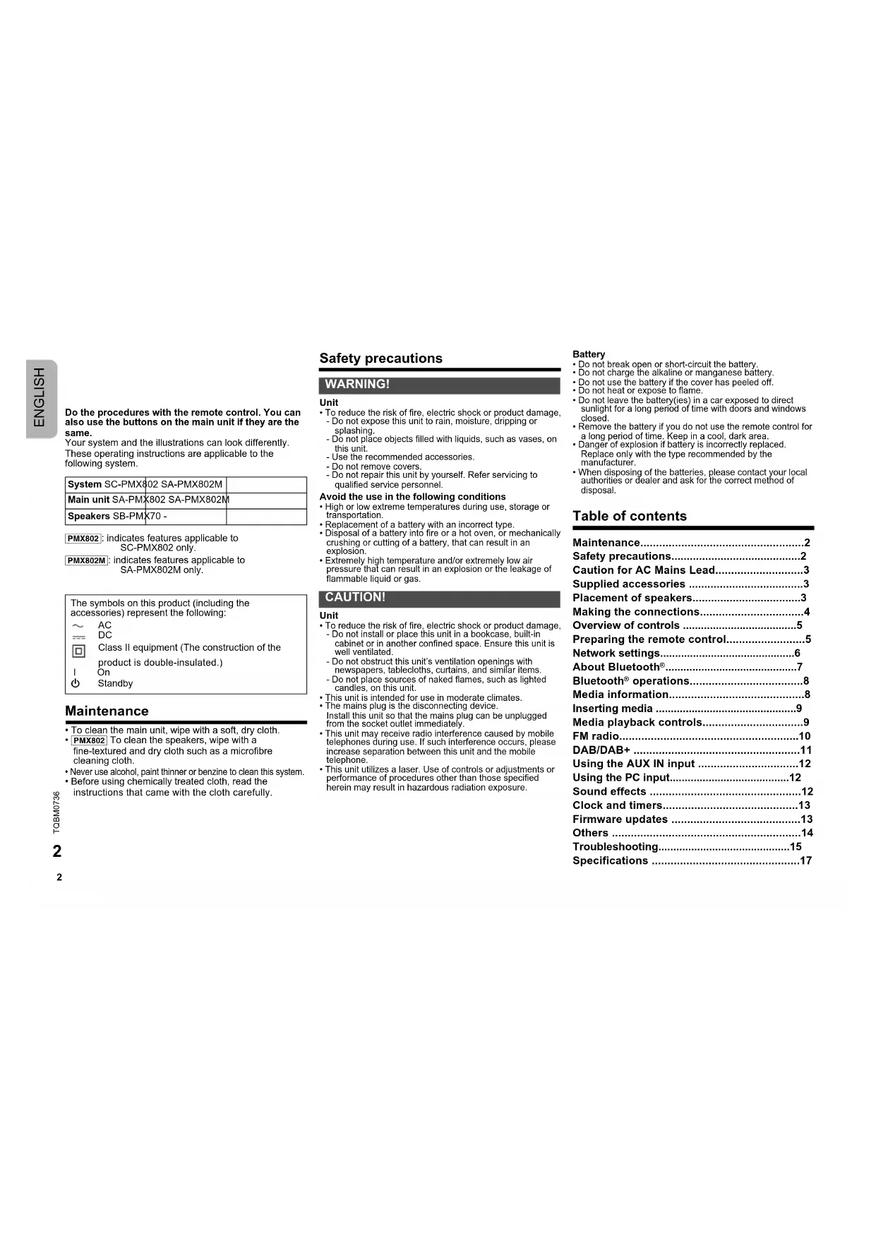 Find the device manual for free SAPMX802 PANASONIC in PDF.