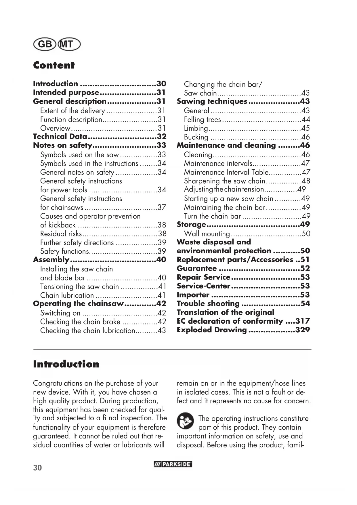 The guarantee applies for all material and manufacturing defects. This guarantee does not extend to cover product parts that are subject to normal wear and may therefore be considered as wearing parts (e.g. saw chain) or to cover damage to breakable parts (e.g. switches).