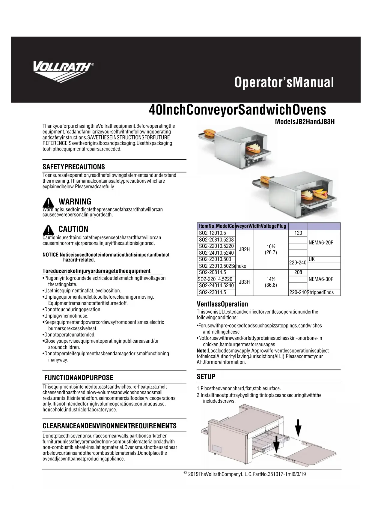 Download the instructions for your Oven in PDF format for free! Find your manual JB2H - Vollrath and take your electronic device back in hand. On this page are published all the documents necessary for the use of your device. JB2H by Vollrath.
