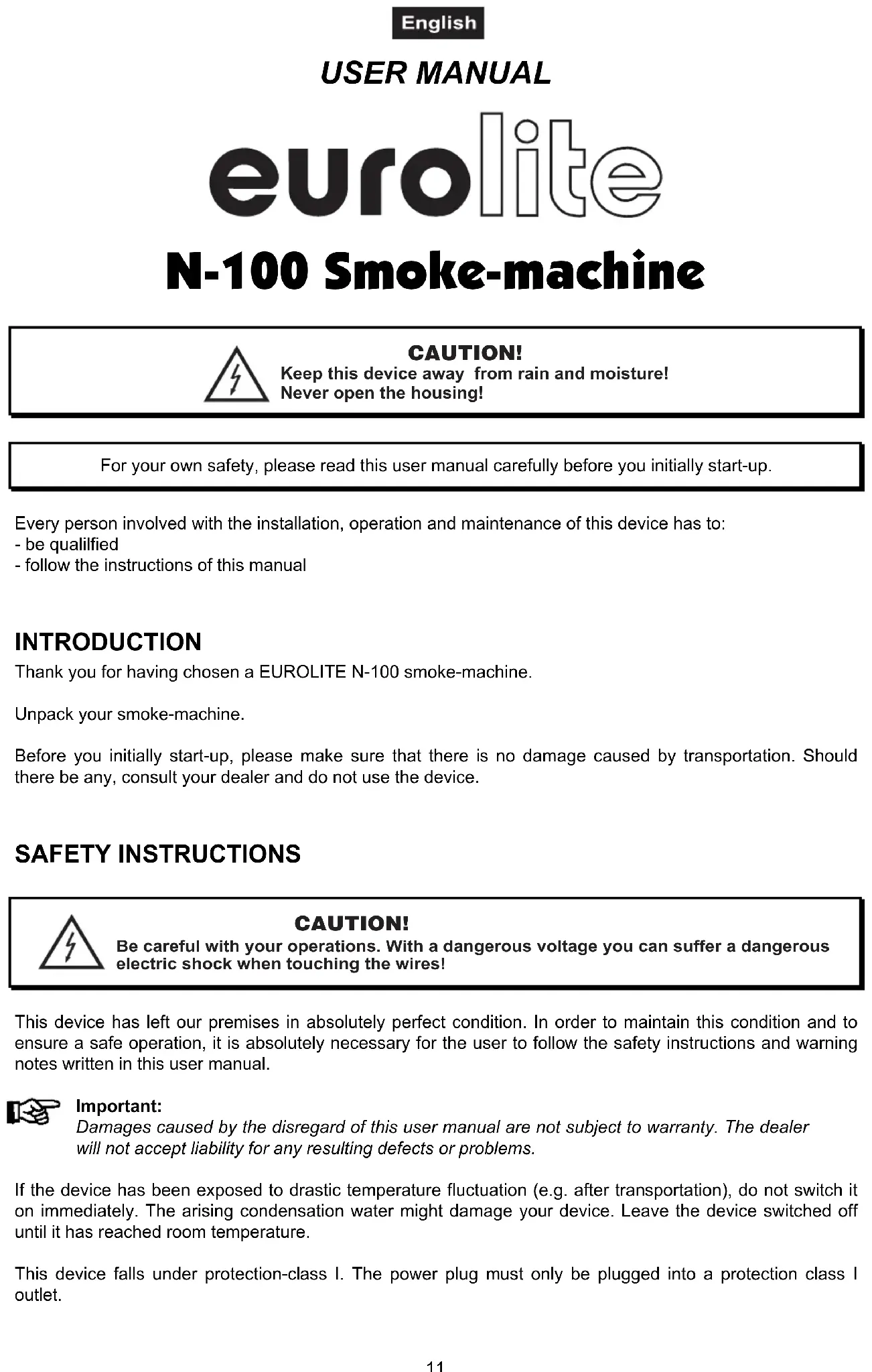 USER MANUAL N110 Eurolite