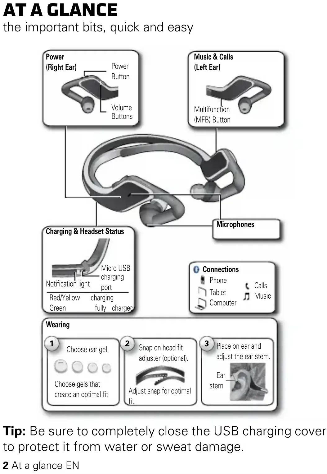 Snap on head fit adjuster (optional). Adjust snap for optimal fit. Microphones3EN Connect & go Connect & go let’s get you connected Turn Bluetooth on for your device.