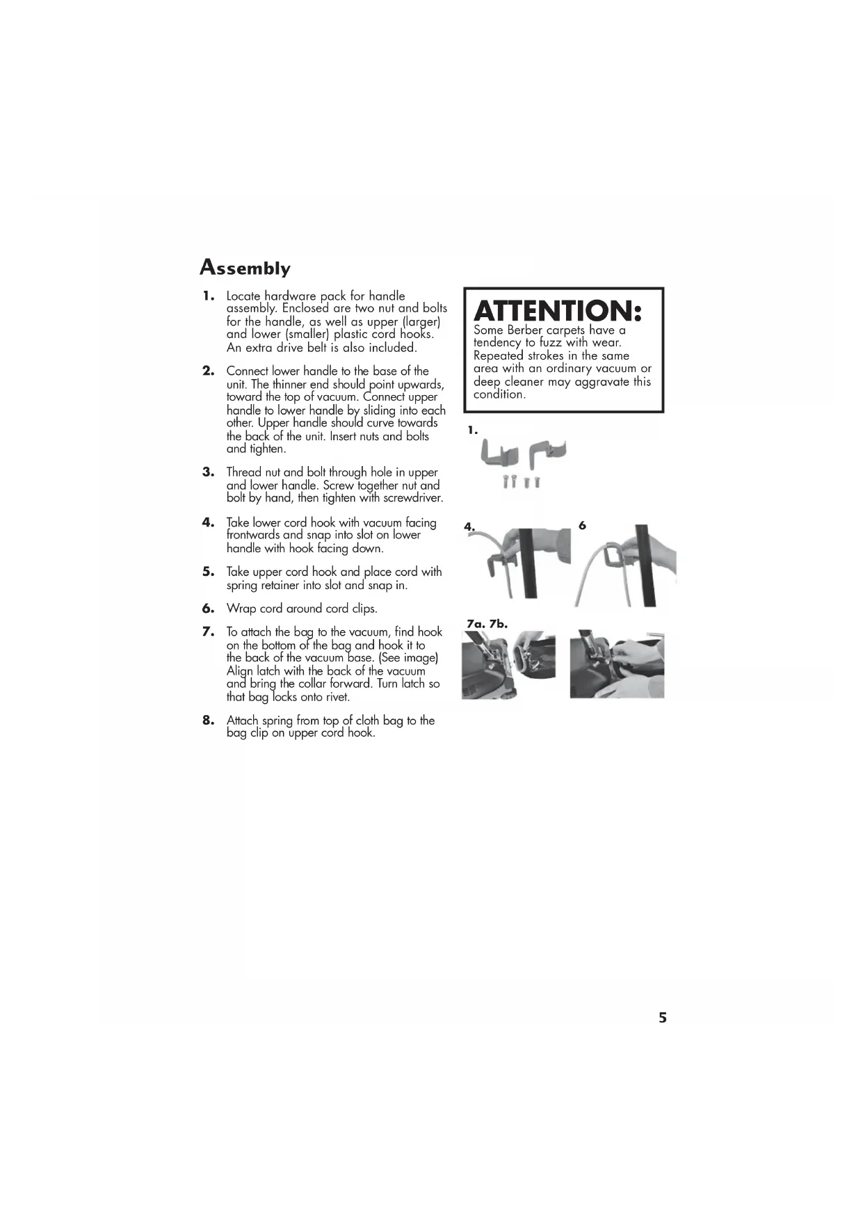 bag clip on upper cord hook. ATTENTION: Some Berber carpets have a tendency to fuzz with wear. Repeated strokes in the same area with an ordinary vacuum or deep cleaner may aggravate this condition. 4.8731-242-008-1 moc.laicremmocllessib.www Operations