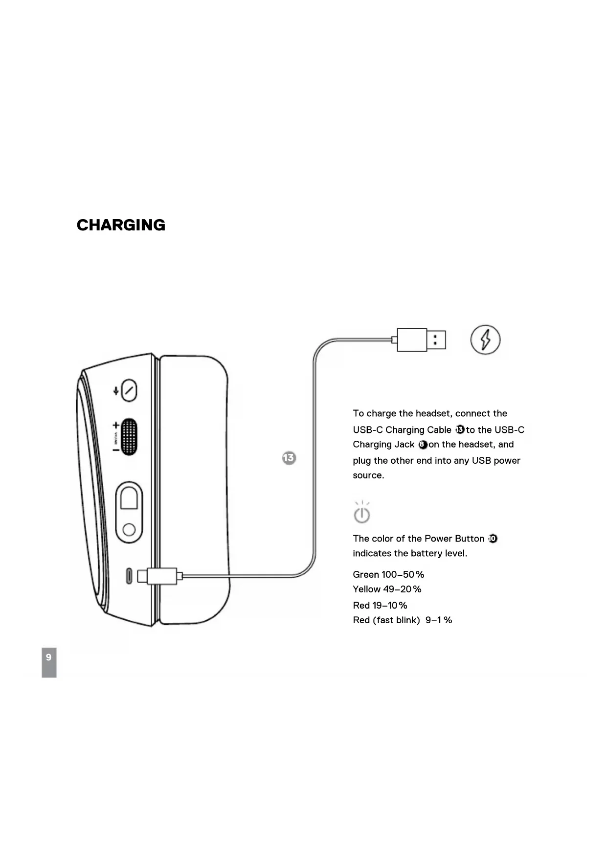 CHARGING To charge the headset, connect the USB-C Charging Cable
